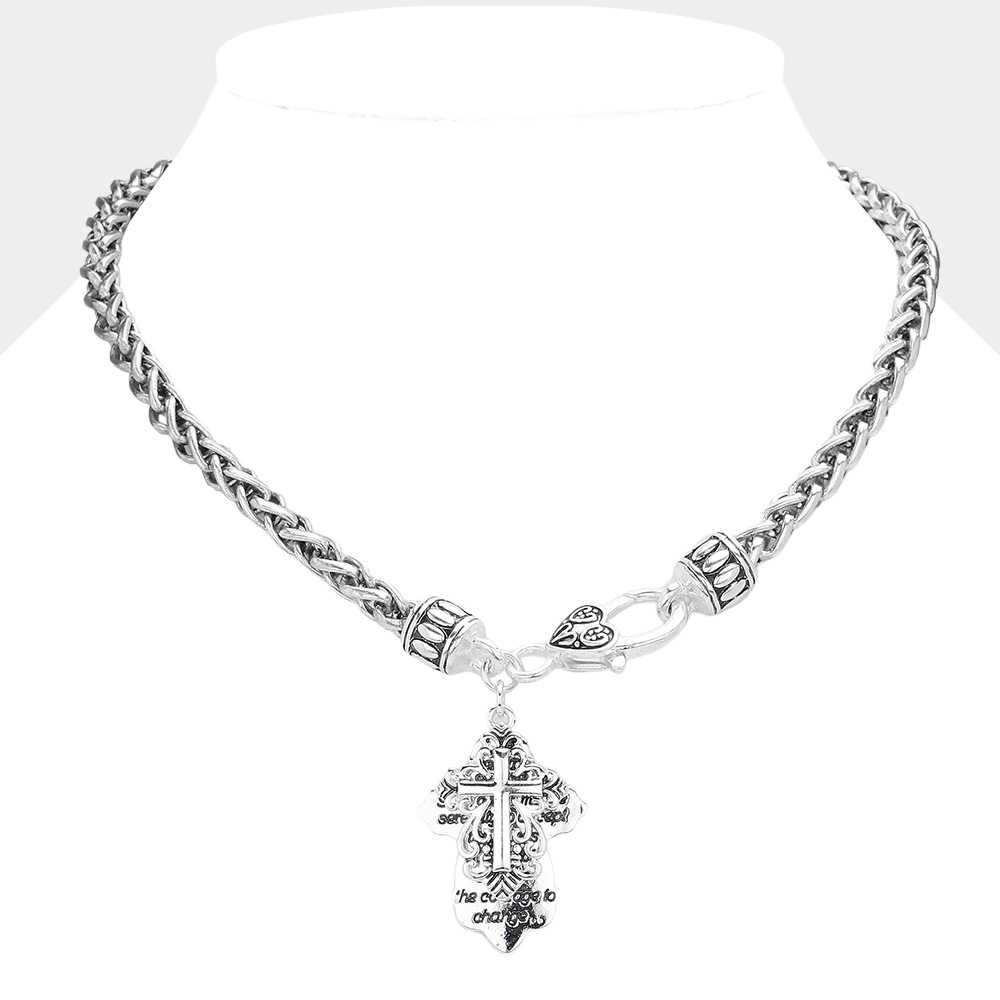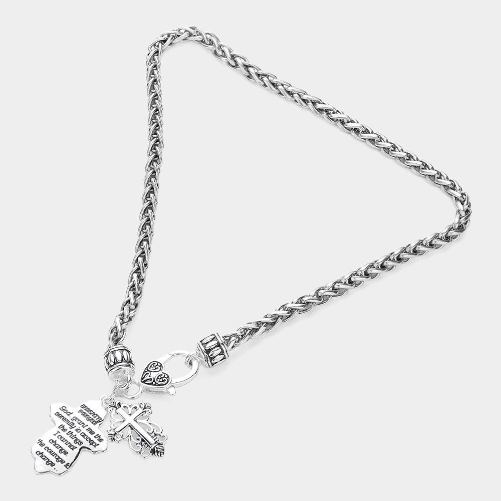Ten Commandment Metal Cross Charm Message Bangle Bracelet