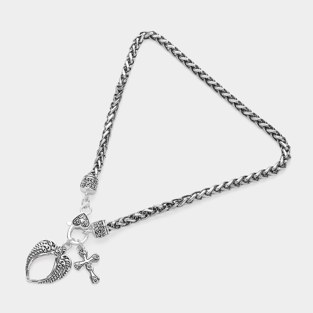 7PCS - Angel Crown Evil Eye Key Tassel Charm Faceted Beaded Stretch Bracelets