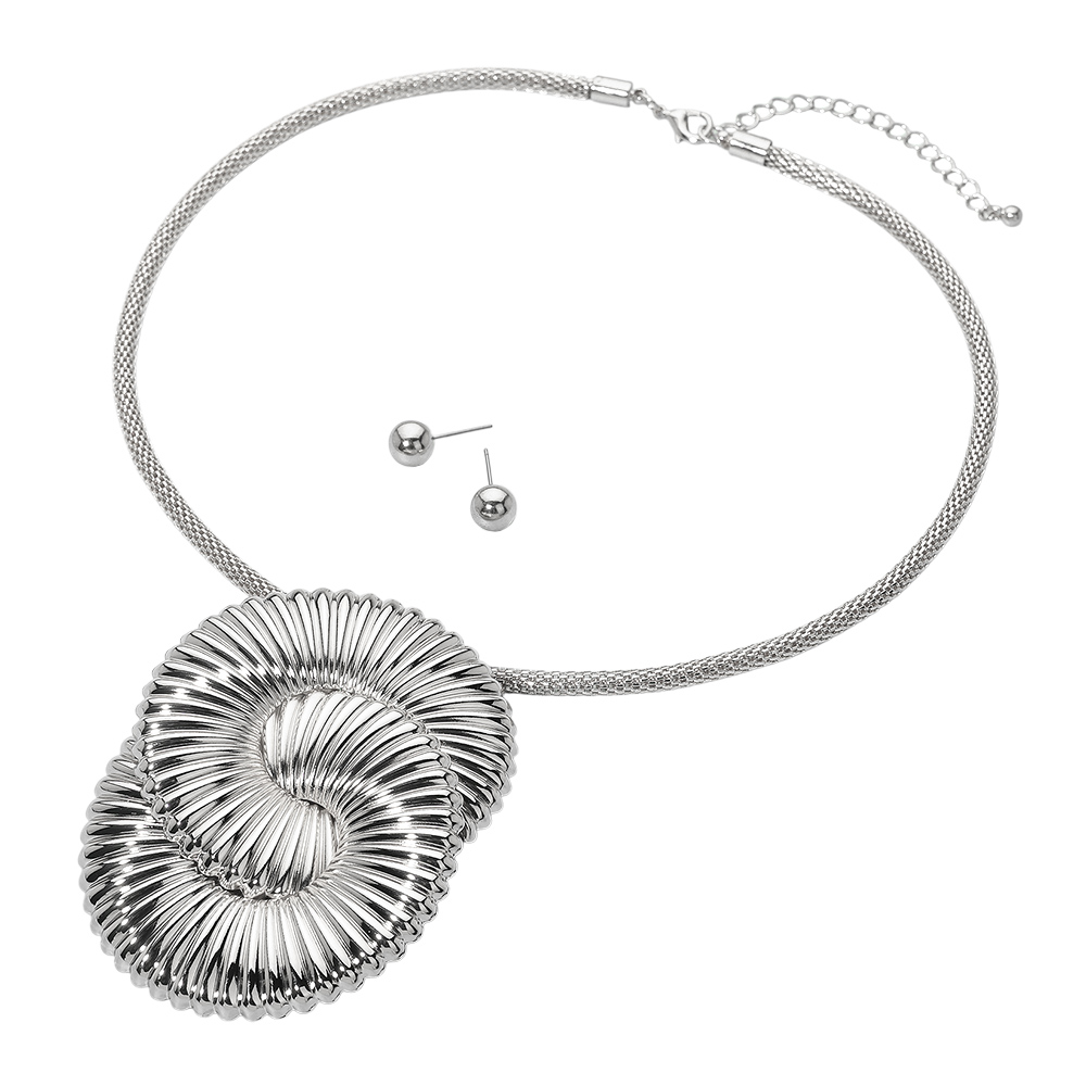 Bold Metal Spiral Pendant Accent Statement Necklace