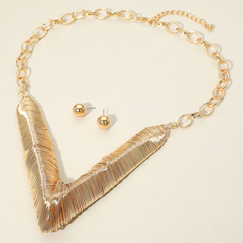 Bold Metal Wire Wrapped Chevron Pendant Statement Necklace Bold Metal Wire Wrapped Chevron Pendant Statement Necklace Bold Metal Wire Wrapped Chevron Pendant Statement Necklace