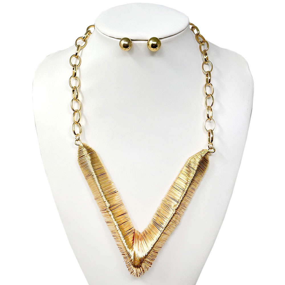 Bold Metal Wire Wrapped Chevron Pendant Statement Necklace