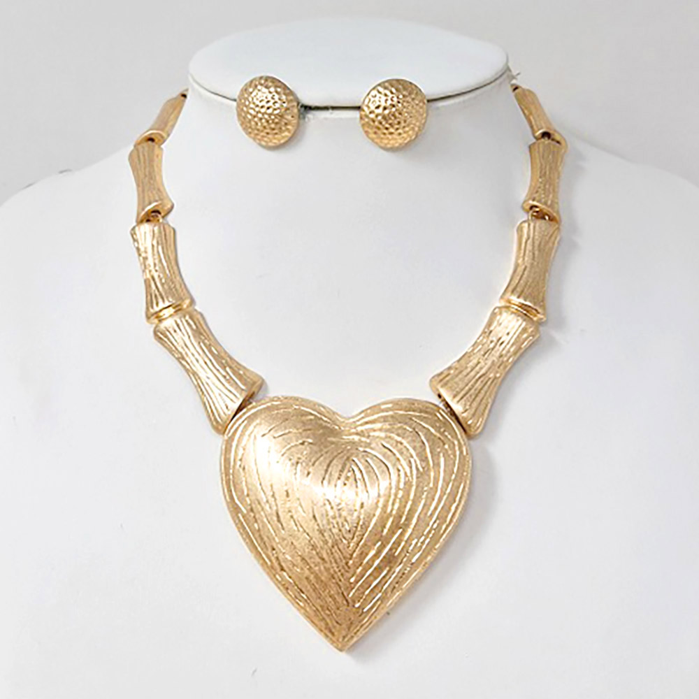 Bold Textured Metal Heart Accent Bamboo Link Statement Necklace Bold Textured Metal Heart Accent Bamboo Link Statement Necklace Bold Textured Metal Heart Accent Bamboo Link Statement Necklace