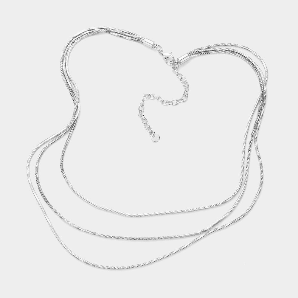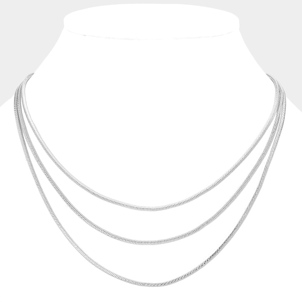 SECRET BOX_Stainless Steel Herringbone Chain Triple Layered Necklace