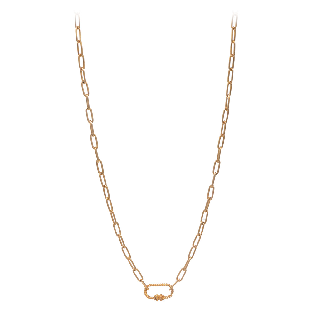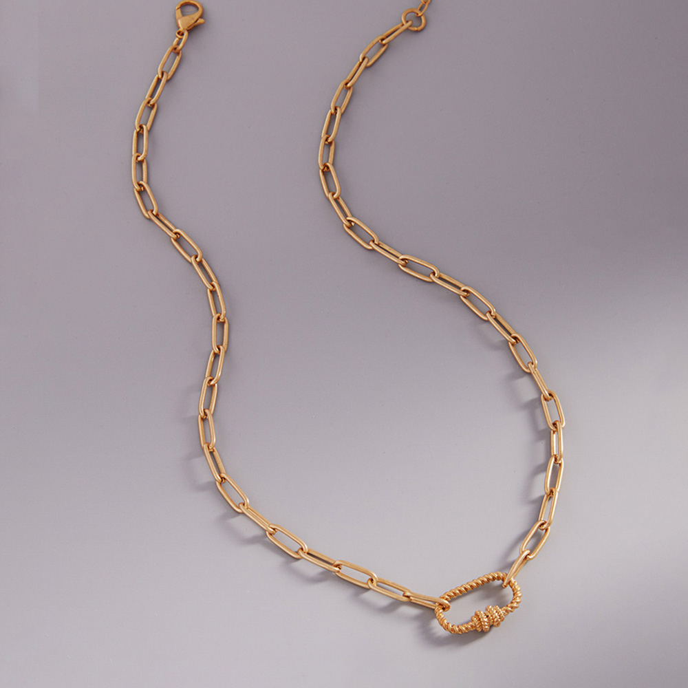 Details • Necklace Size : 18.5" + 3.5" L • Pendant Size : 0.5" X 0.8" • Make a chic statement with this paperclip chain necklace featuring a textured oval link centerpiece. Modern and versatile, it’s a stylish accessory that pairs effortlessly with layered looks or stands out beautifully on its own. • Lead and Nickel Compliant