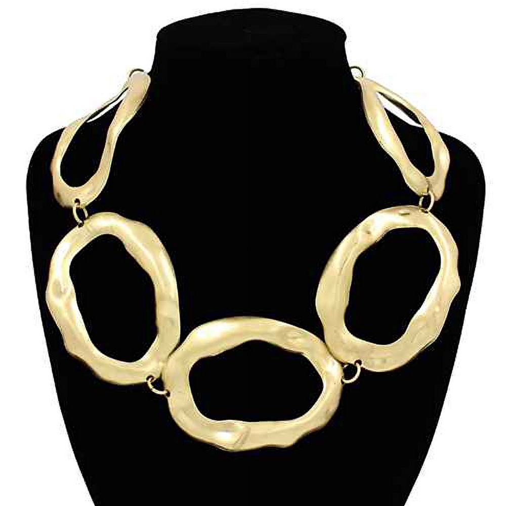 Details • Necklace Size : 17" + 3.5" L • Decor Size : 2.1" L • Chunky statement necklace with oversized abstract links, perfect for adding a modern edge to everyday and evening ensembles. • Lead and Nickel Compliant