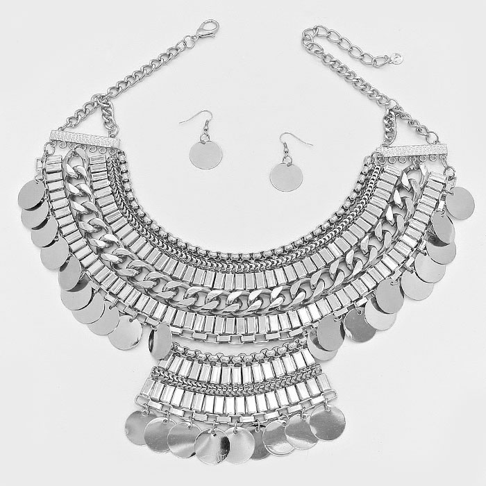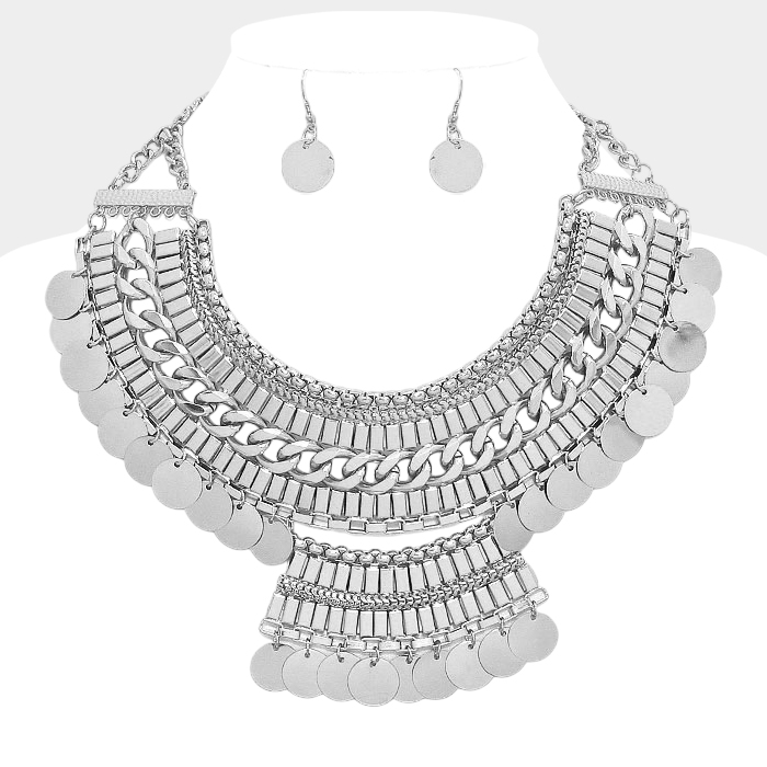 Chunky Metal Chain Disc Cluster Armor Bib Necklace