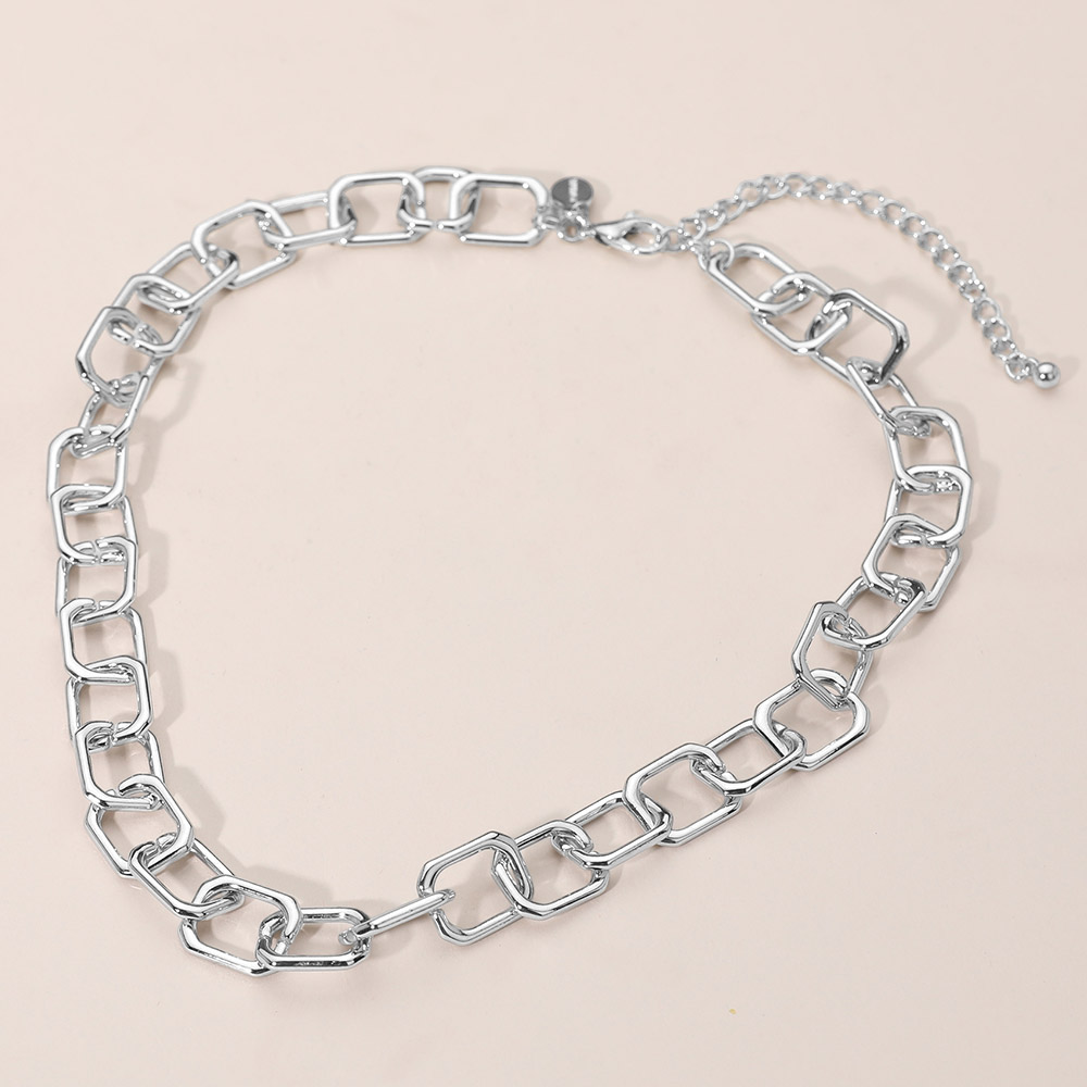 • Bold square link chain necklace with a modern geometric design, perfect for making a chic statement. The adjustable clasp ensures a comfortable fit, ideal for pairing with layered pieces or wearing solo for a sleek, contemporary edge to any outfit.