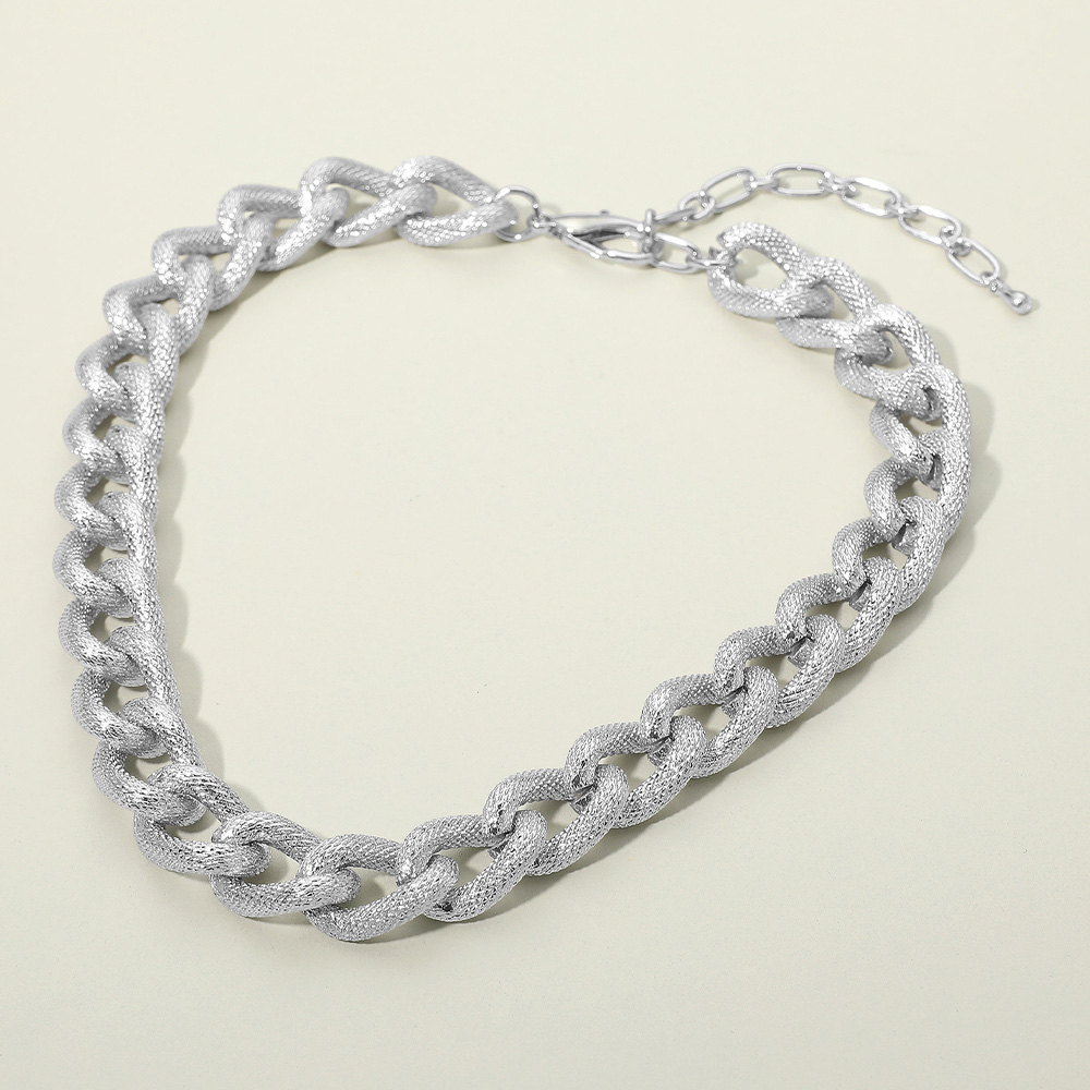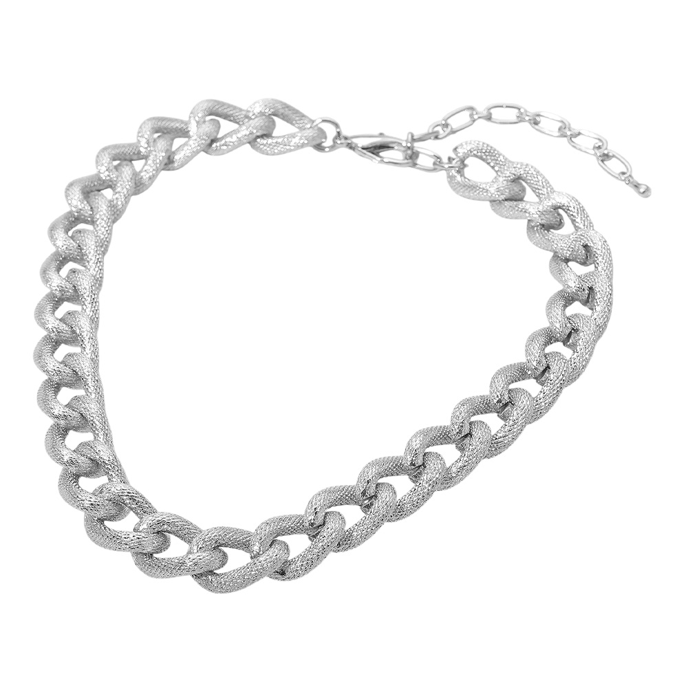 Details • Necklace Size : 15" + 3.75" L • Decor Size : 0.7" L • Make a bold statement with this chunky textured chain necklace, featuring oversized links and a sleek adjustable clasp. Perfect for adding edge to casual outfits or elevating evening looks, this versatile piece is designed to stand out with modern urban style. • Lead and Nickel Compliant