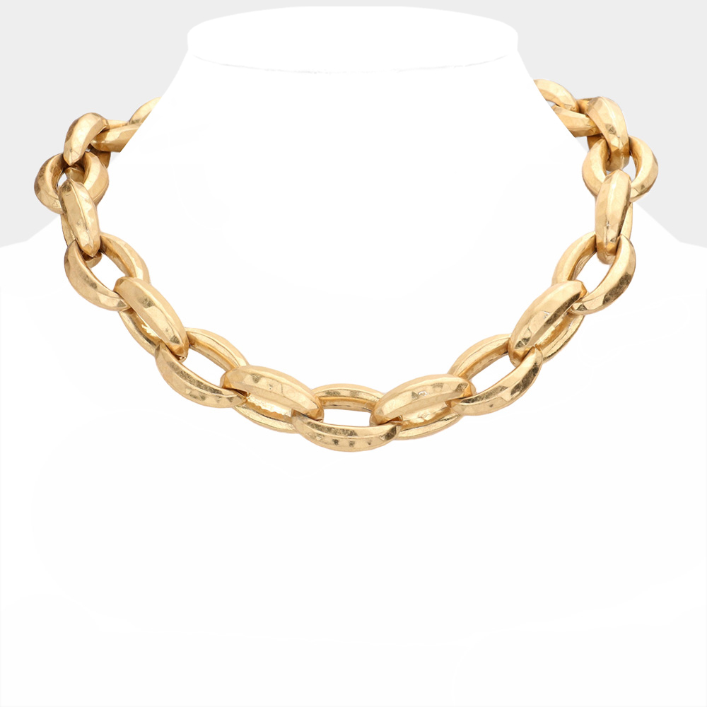 Details • Necklace Size : 18.5" L + 3" L • Decor Size : 0.8" L • Bold and stylish chunky chain necklace featuring alternating gold-tone oval links. Adjustable length for a perfect fit. Ideal for making a fashion-forward statement at any occasion. • Lead and Nickel Compliant