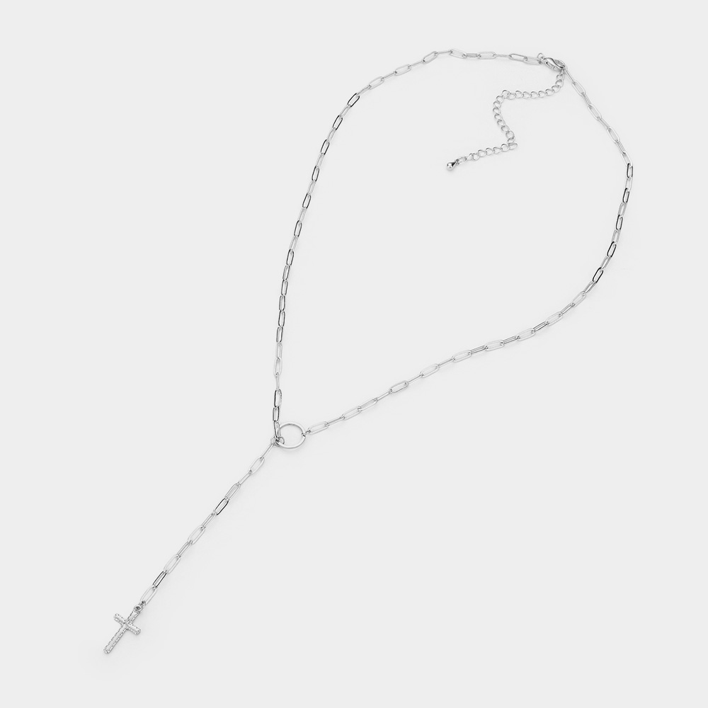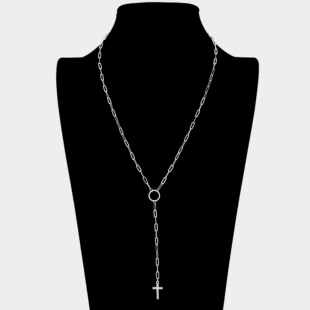 Faux Leather Cross Pendant Paperclip Chain Necklace