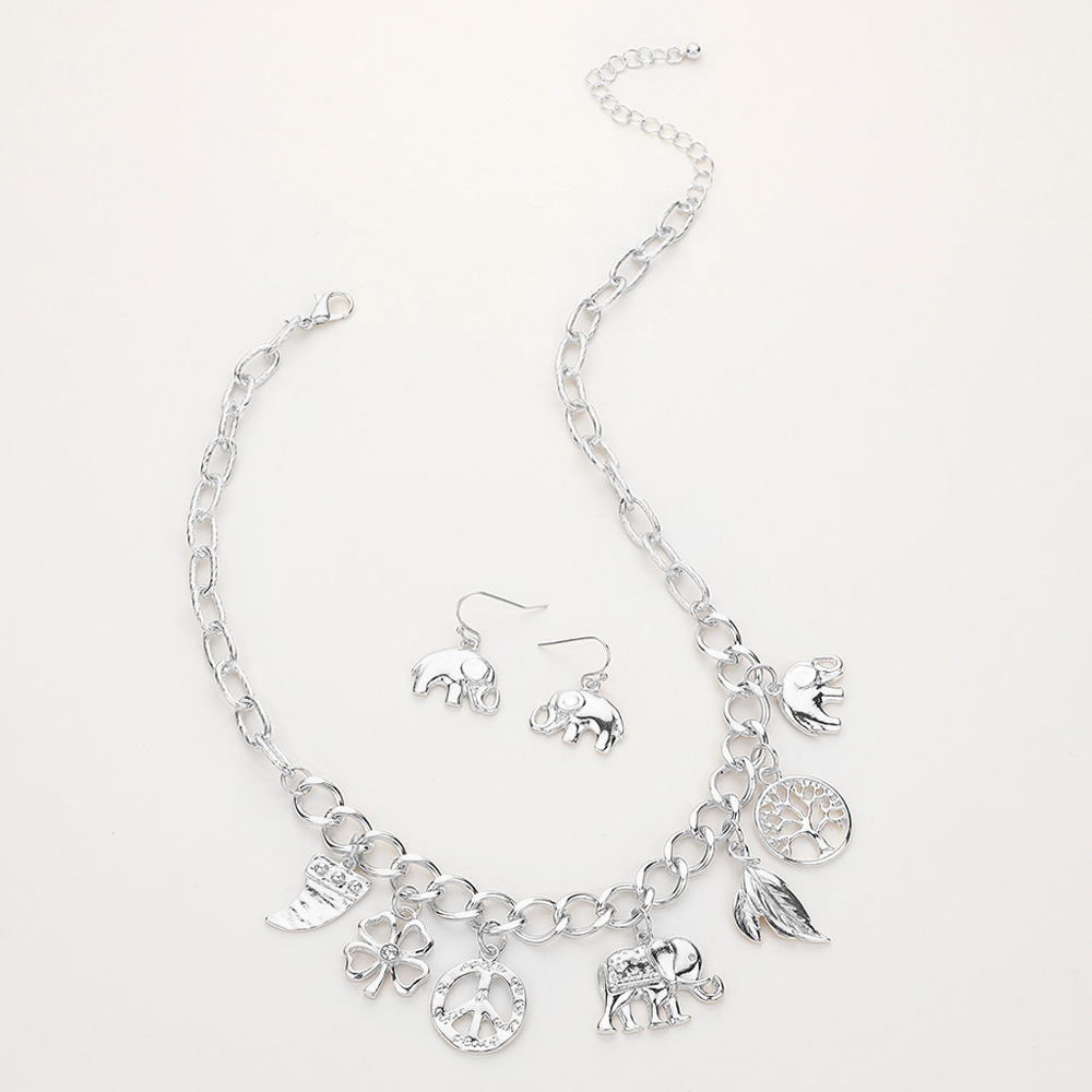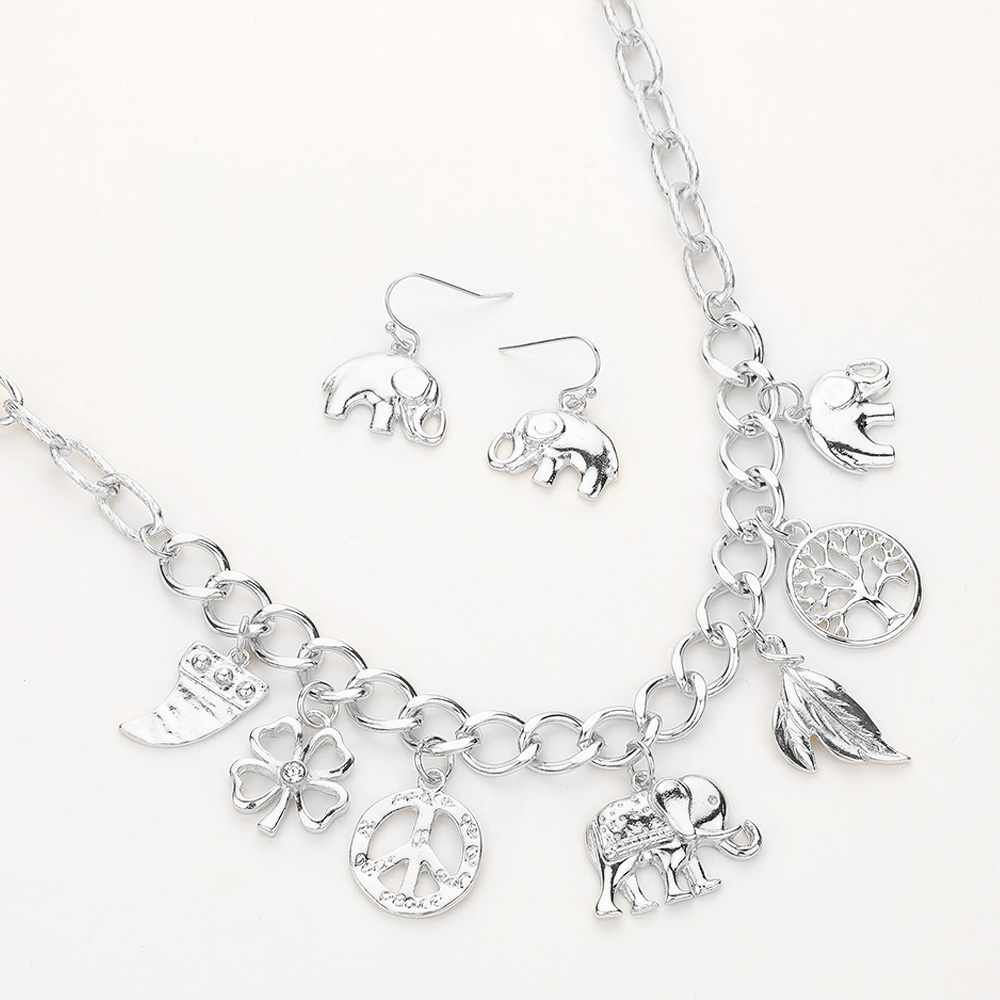 Elephant Clover Peace Tree of Life Leaf Horn Charm Station Necklace