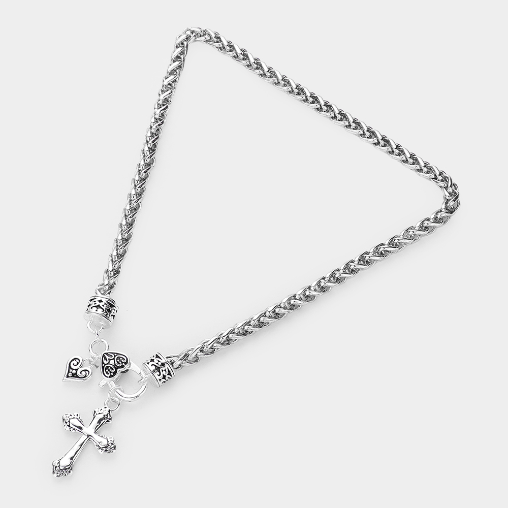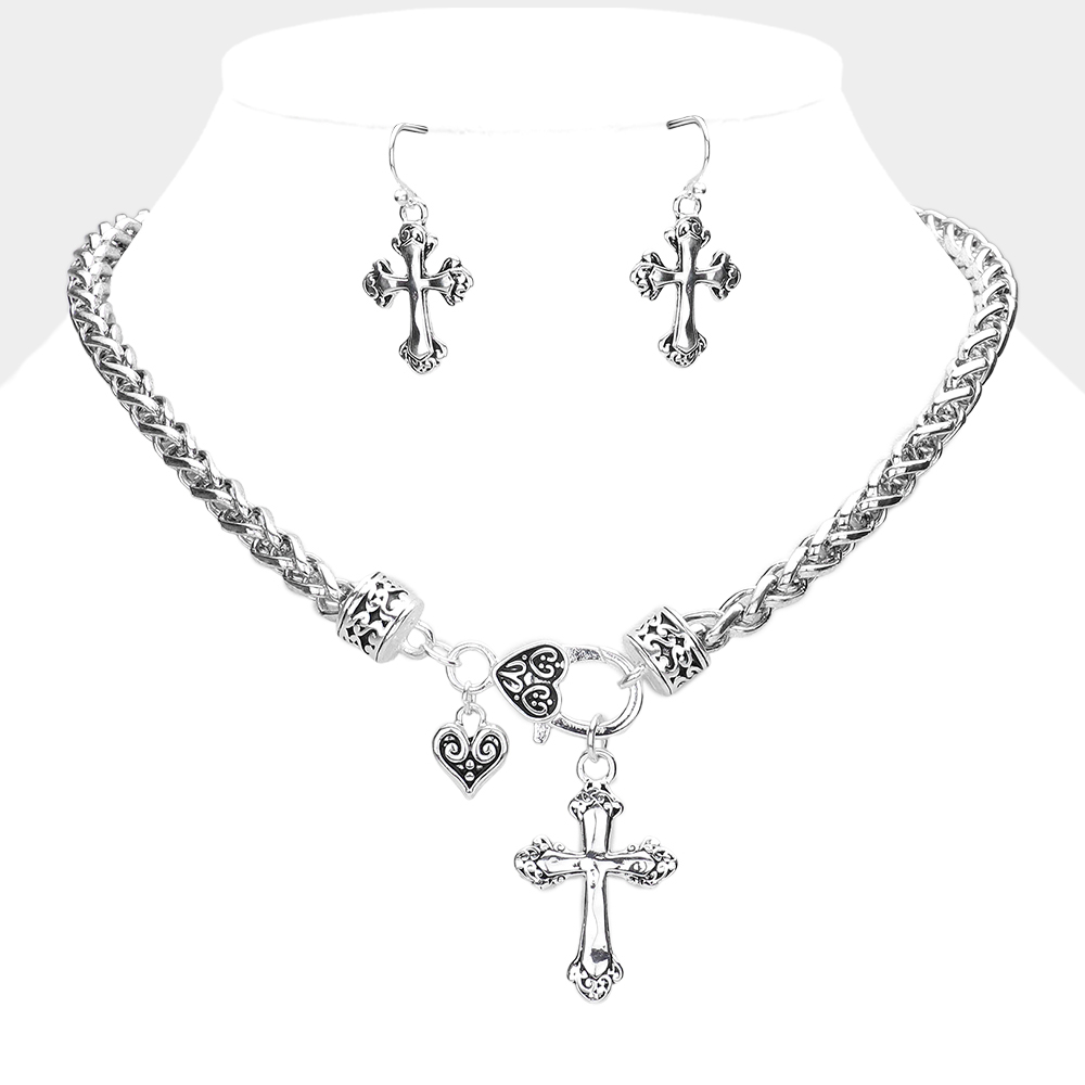 Embossed Antique Metal Cross Pendant Necklace