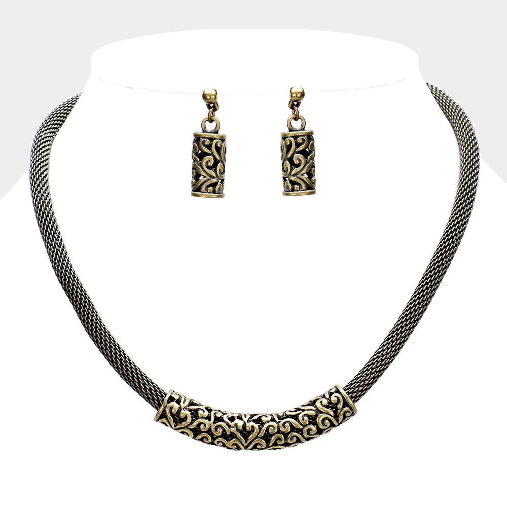 Embossed Metal Mesh Chain Necklace