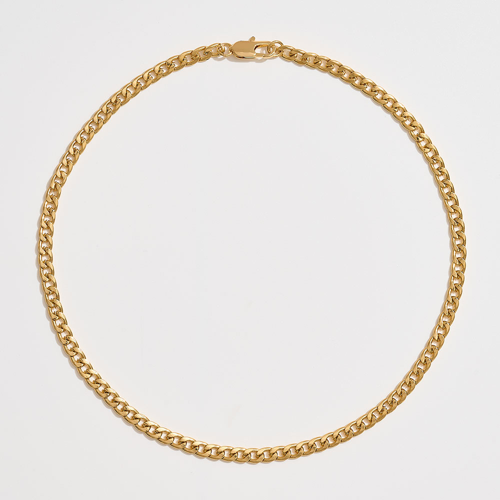 Details • Necklace Size : 18" + 1" L • Decor Size : 0.2" L • Bold and refined, this curb chain necklace is crafted in durable brass for a polished look. The classic chain style offers versatile wear, making it perfect for layering or as a standalone statement piece. An essential accessory that elevates both casual and formal outfits. • Brass • Gold Dipped • Made In Korea