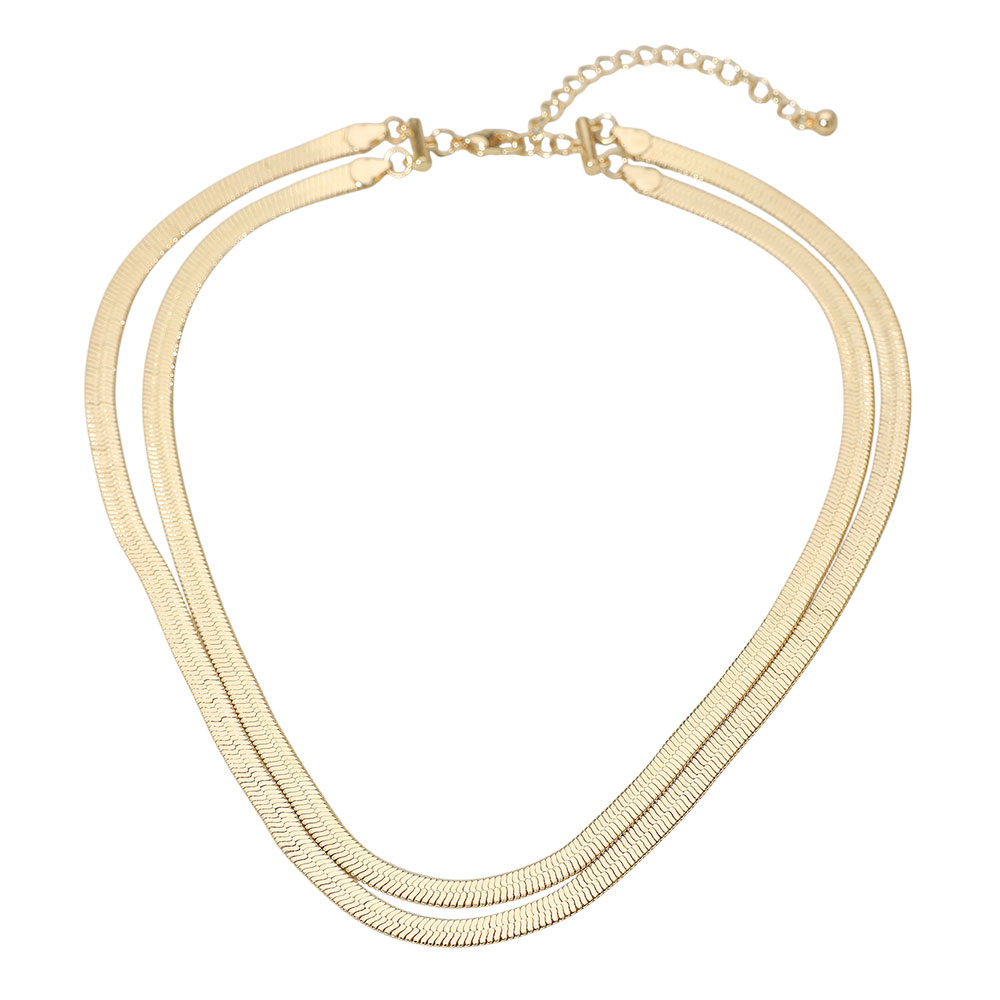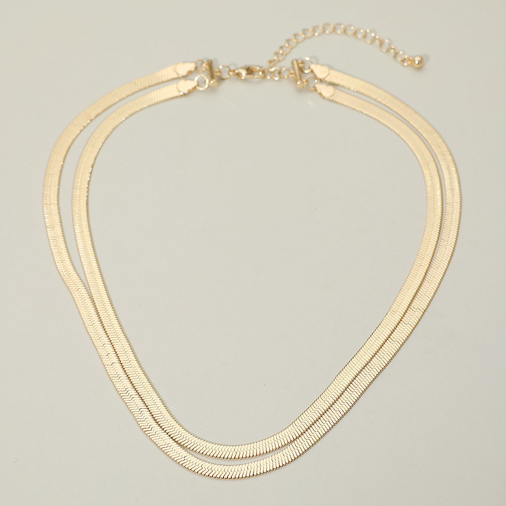 Gold Dipped Double Layered Herringbone Chain Necklace
