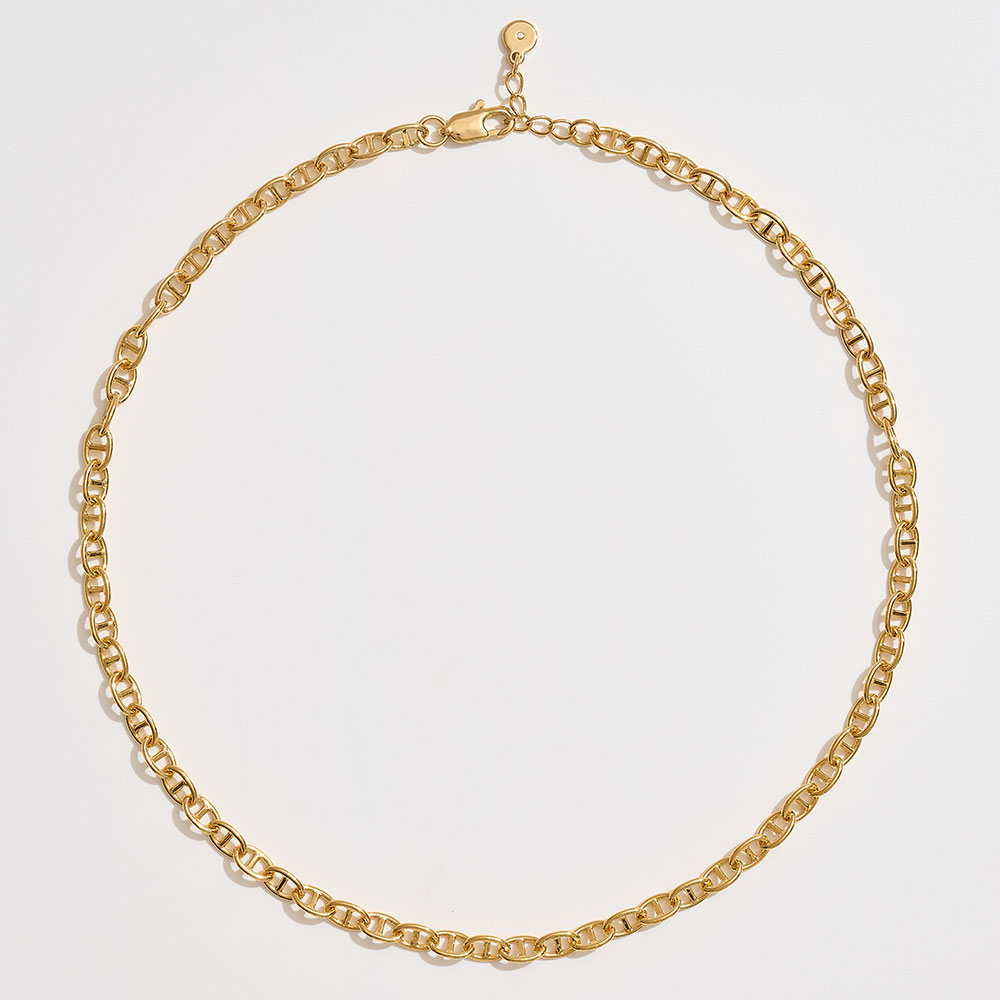 Details • Necklace Size : 18" + 1" L • Decor Size : 0.2" L • Elevate your style with this chain link necklace featuring uniform interlocking links for a timeless look. Perfect for layering or wearing solo, this versatile piece transitions effortlessly from casual outfits to dressy occasions, making it a must-have accessory in any jewelry collection. • Brass • Gold Dipped • Made In Korea