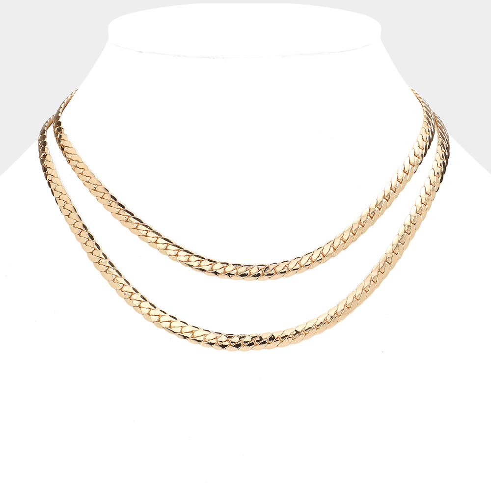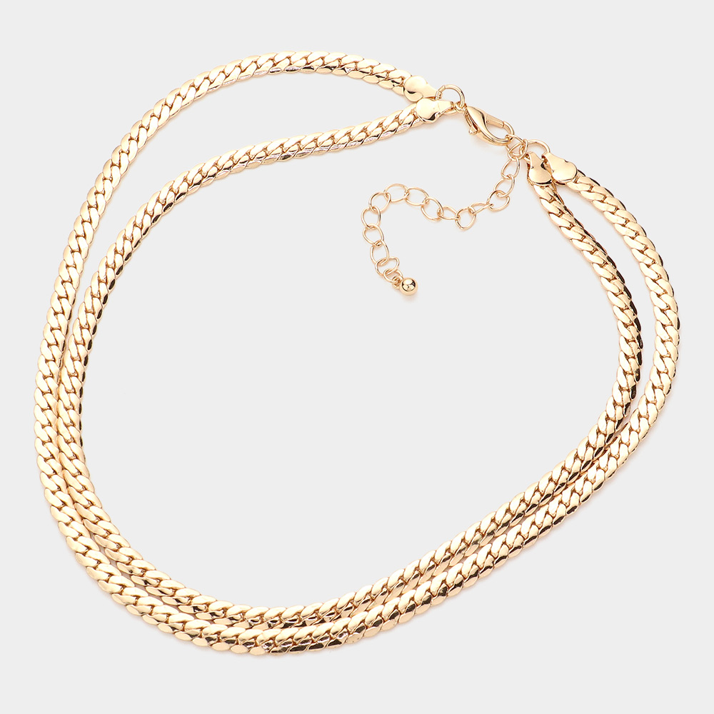 SECRET BOX_Stainless Steel Herringbone Chain Triple Layered Necklace