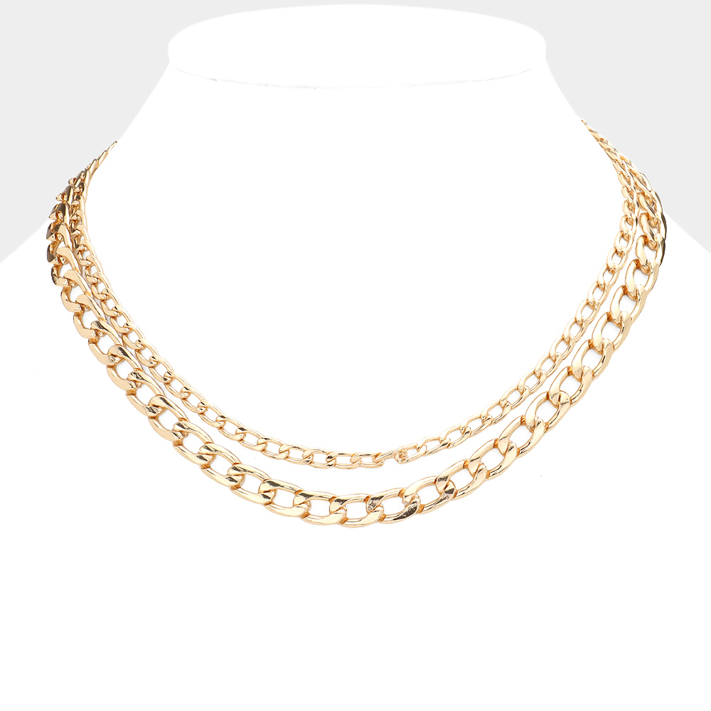 Gold Dipped Metal Chain Double Layered Necklace