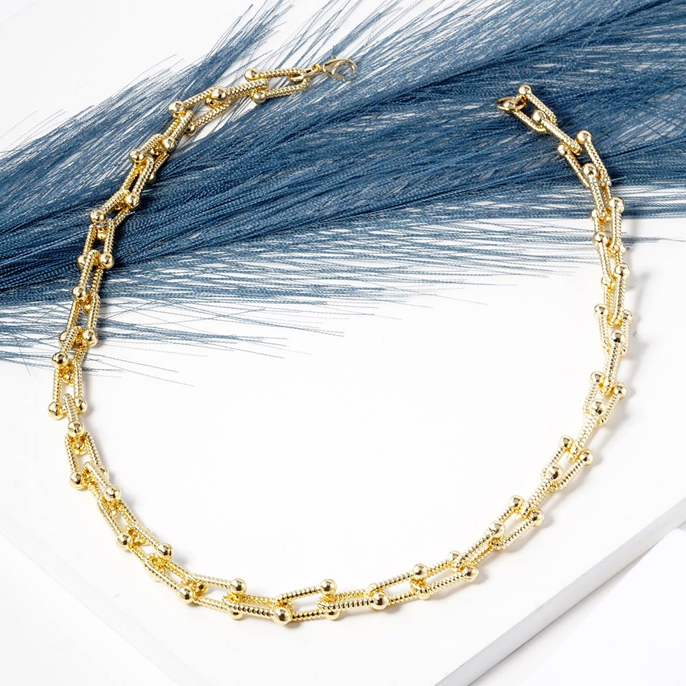 Gold Dipped Textured Metal Hardware Chain Necklace