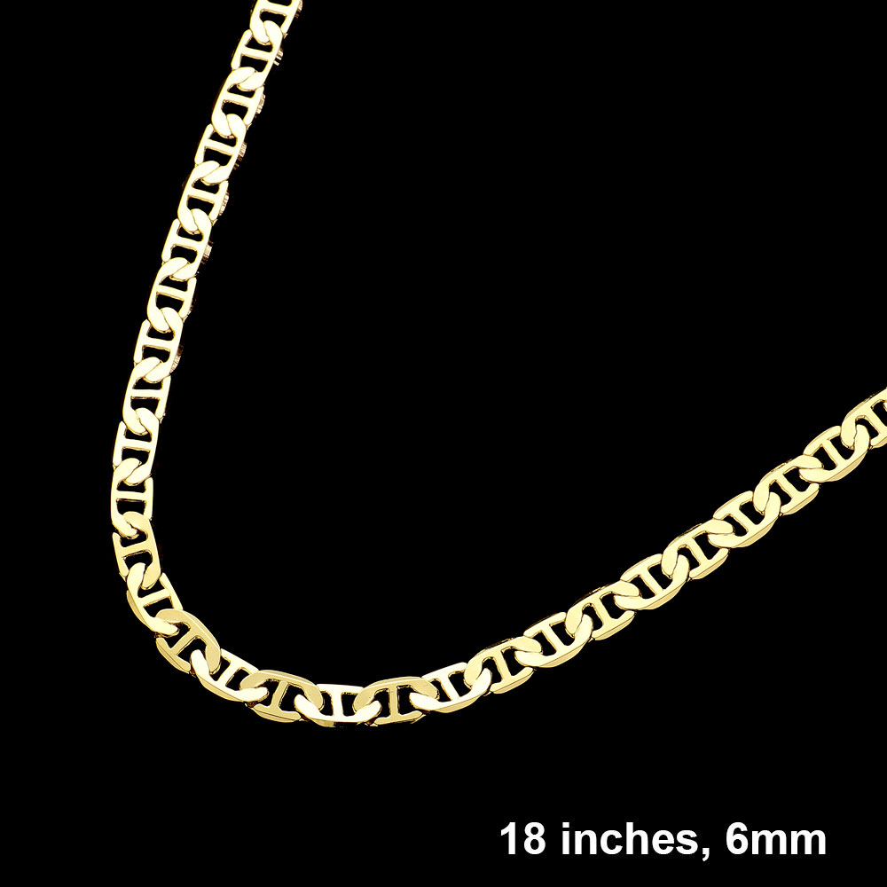 Gold Plated 18 Inch 6mm Mariner Metal Chain Necklace