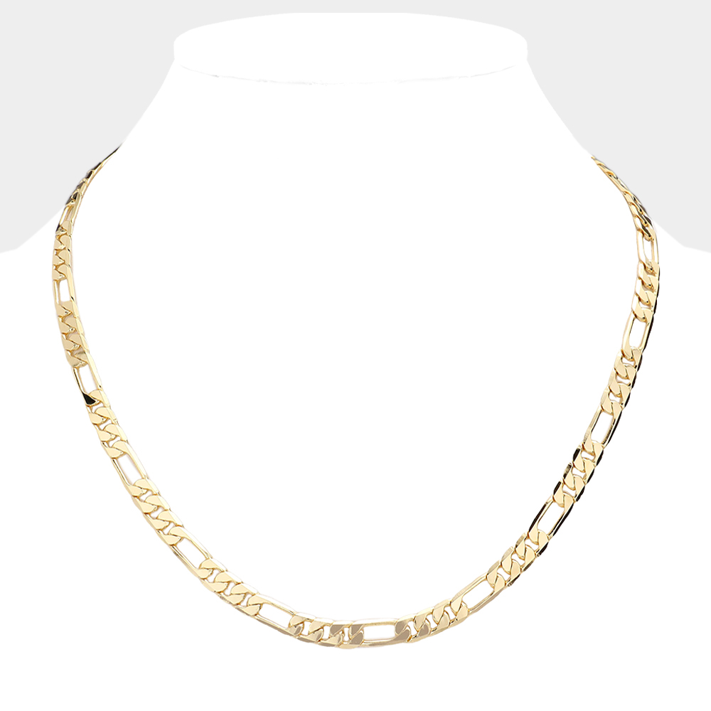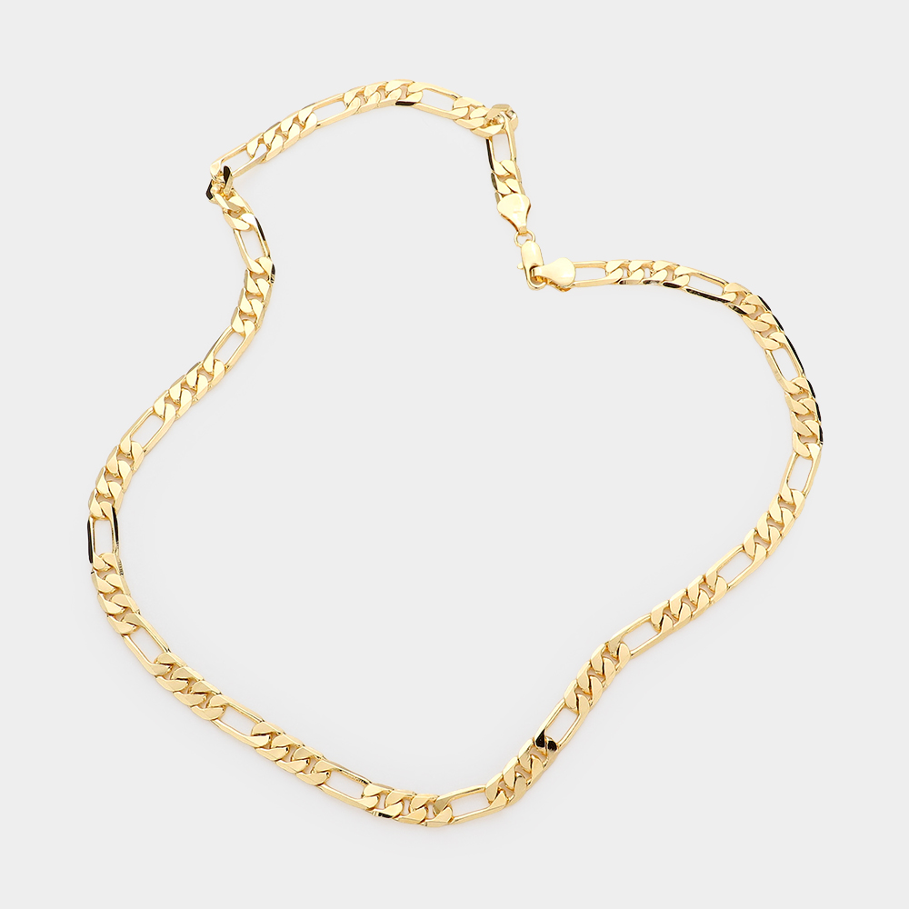Gold Plated 24 Inch 7mm Figaro Metal Chain Necklace