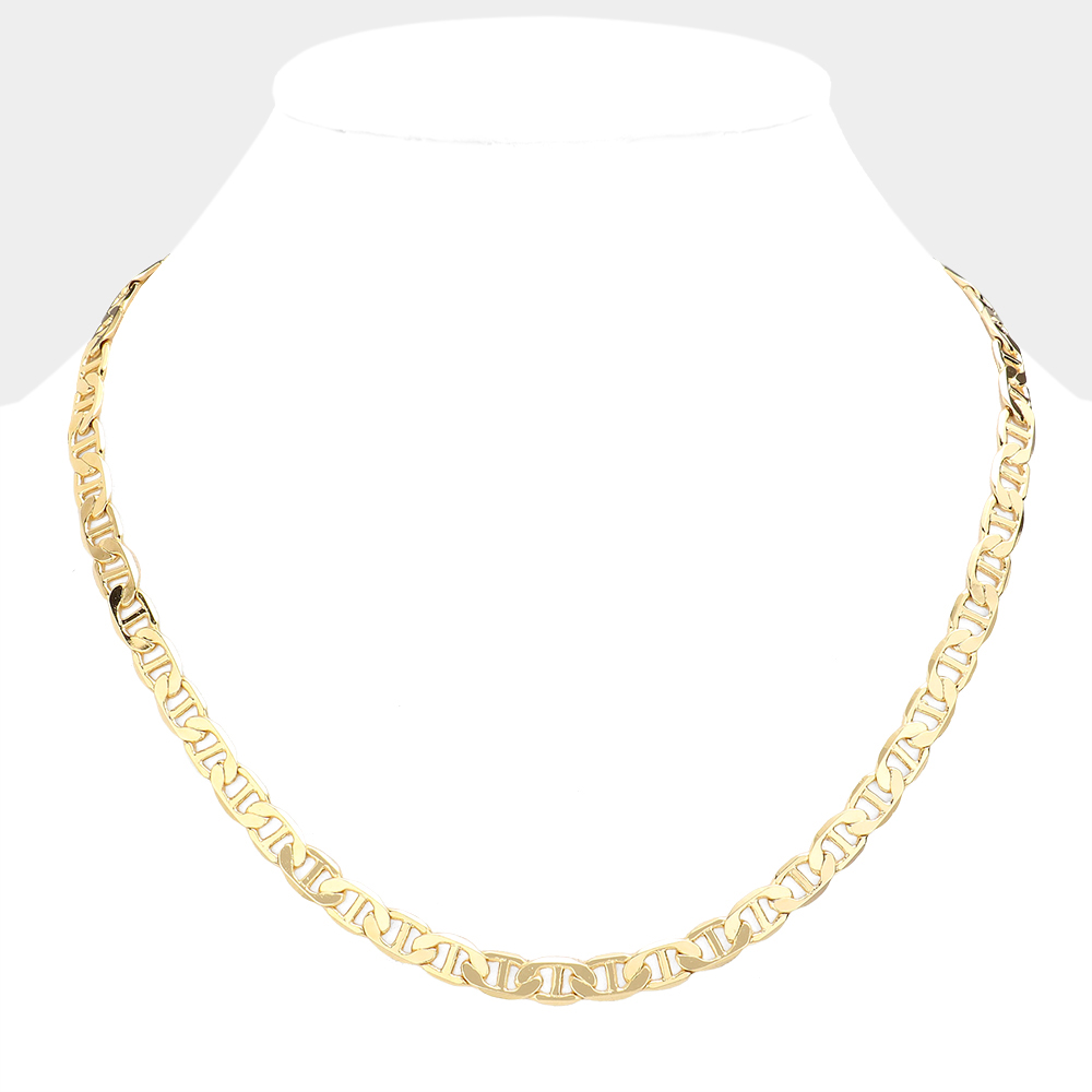 Gold Plated 18 Inch 7mm Mariner Metal Chain Necklace