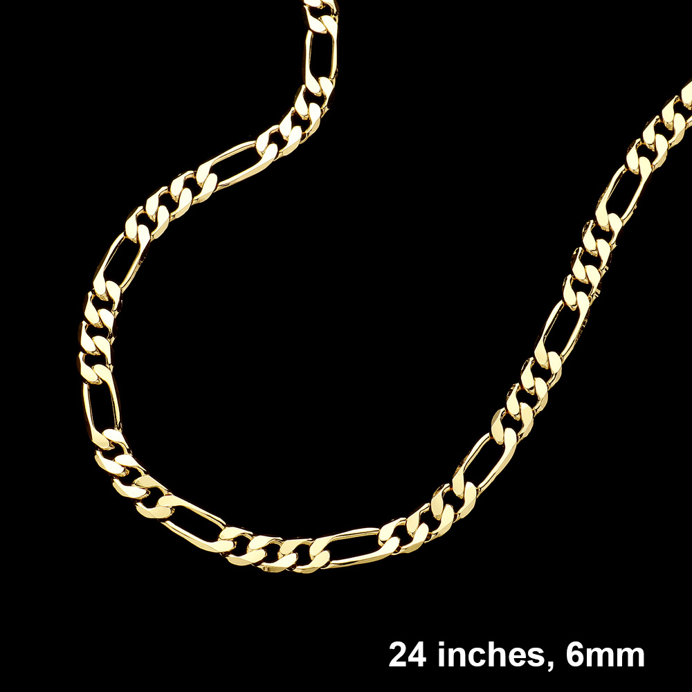 Gold Plated 24 Inch 6mm Figaro Metal Chain Necklace