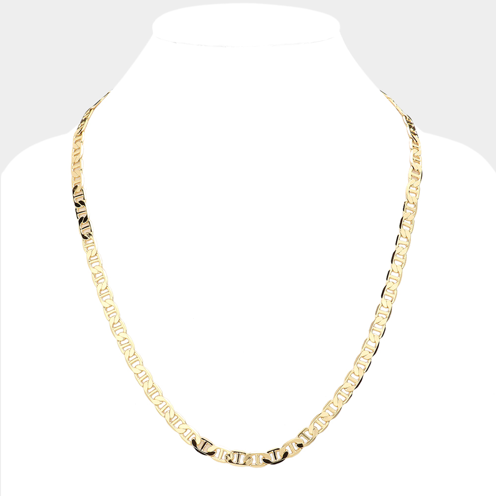 Gold Plated 20 Inch 7mm Mariner Metal Chain Necklace