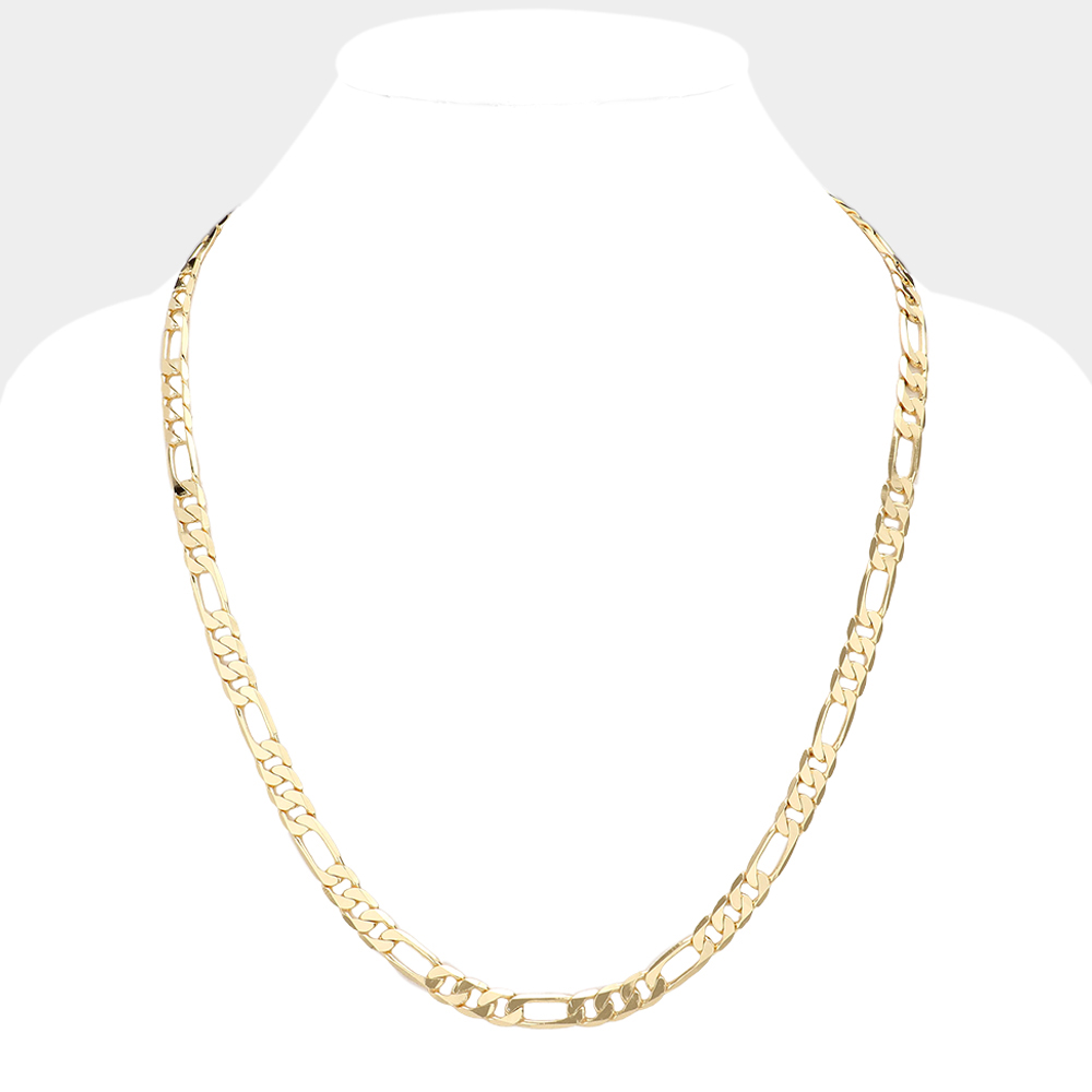 Gold Plated 24 Inch 7mm Figaro Metal Chain Necklace