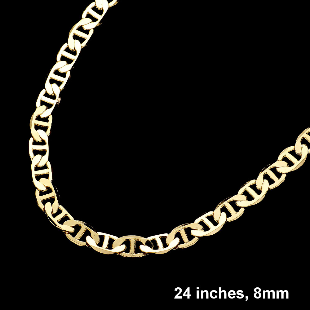 Gold Plated 24 Inch 8mm Mariner Metal Chain Necklace