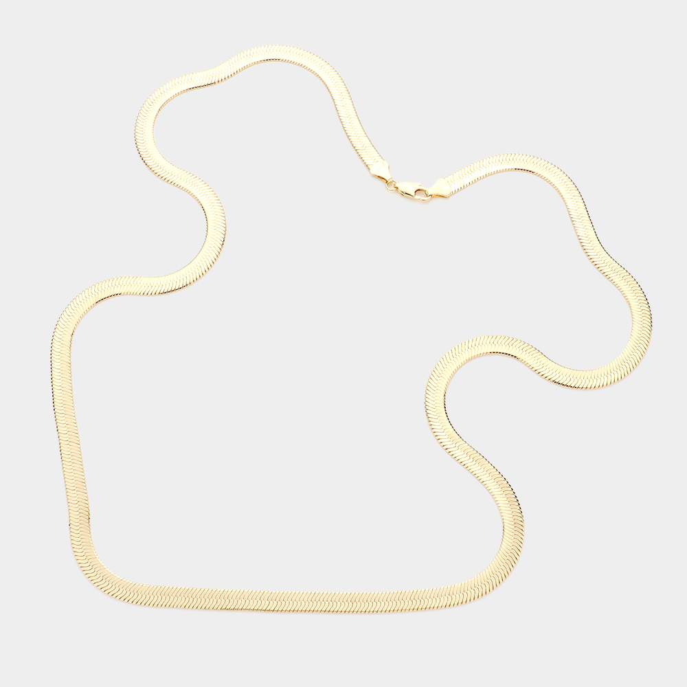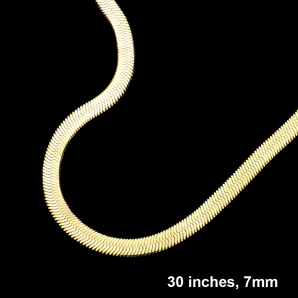 Gold Plated 30 Inch 7mm Herringbone Metal Chain Necklace