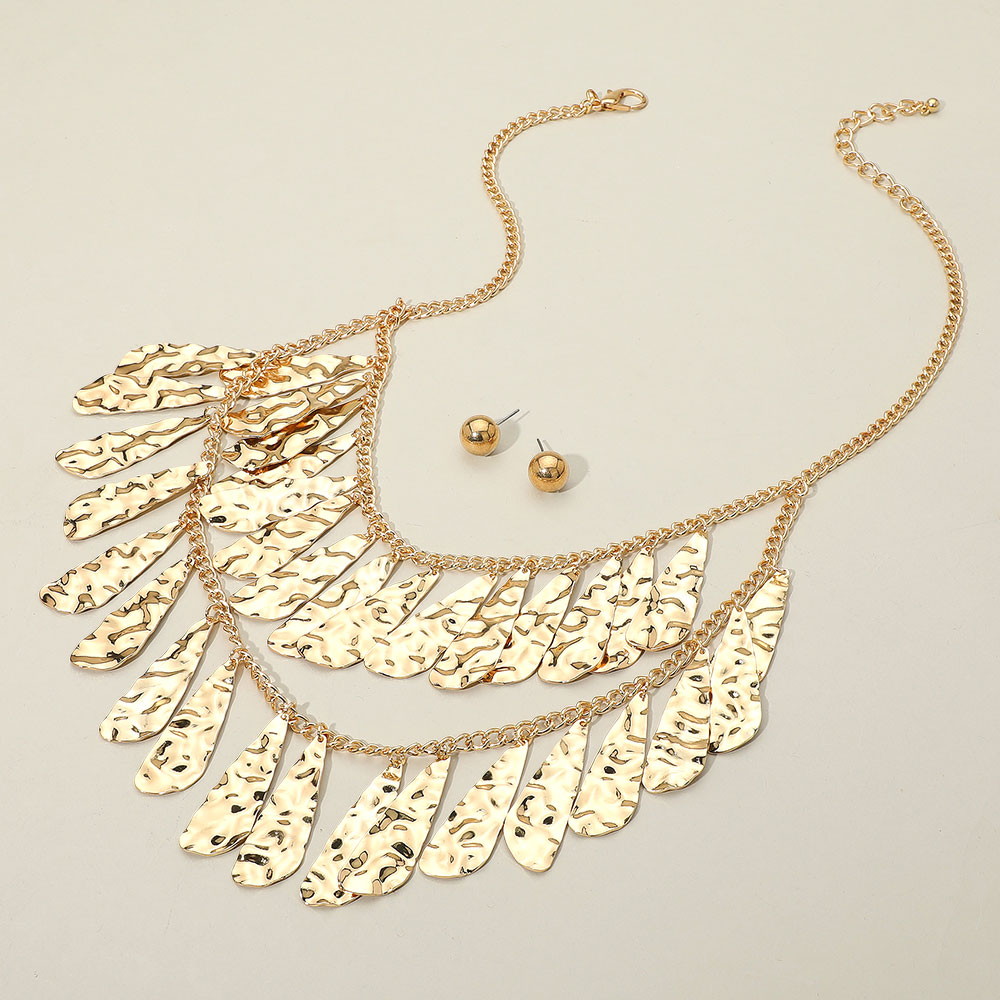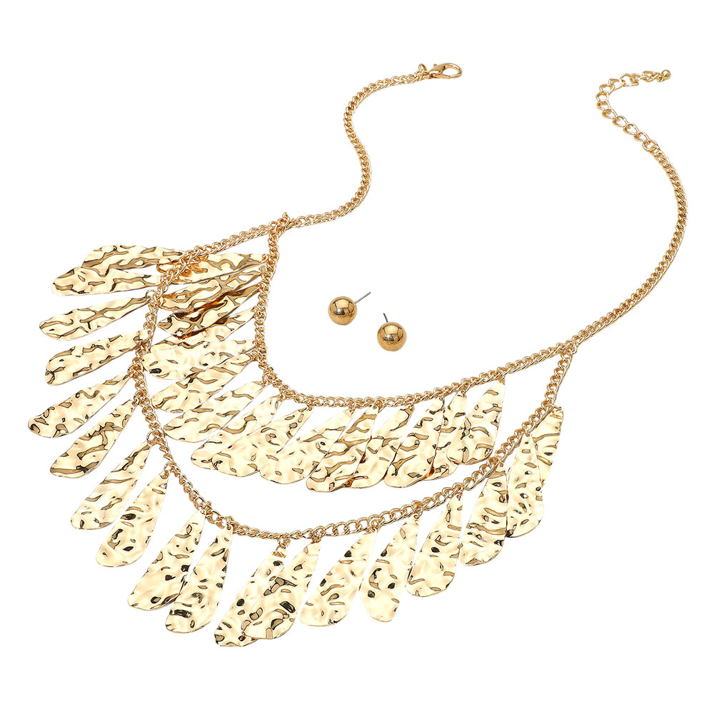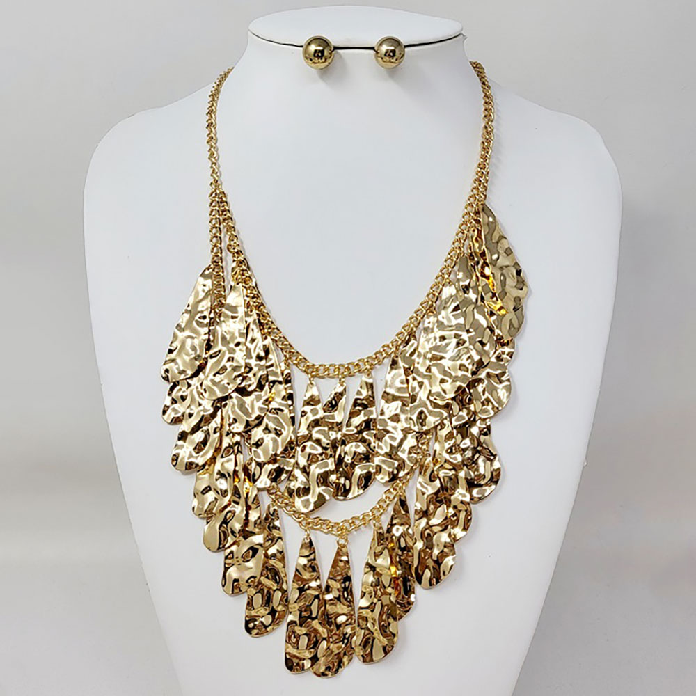 Hammered Metal Teardrop Plate Layered Statement Necklace
