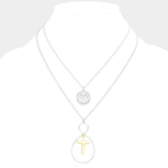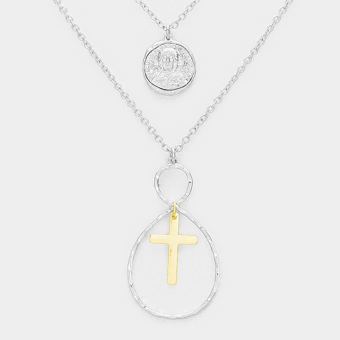 14K Gold Plated Two Tone CZ Stone Paved Cross Bracelet