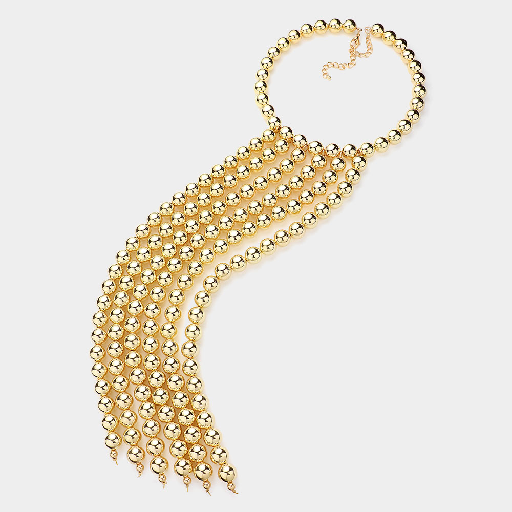 Seashell Hammered Metal Medal Pendant Layered Necklace