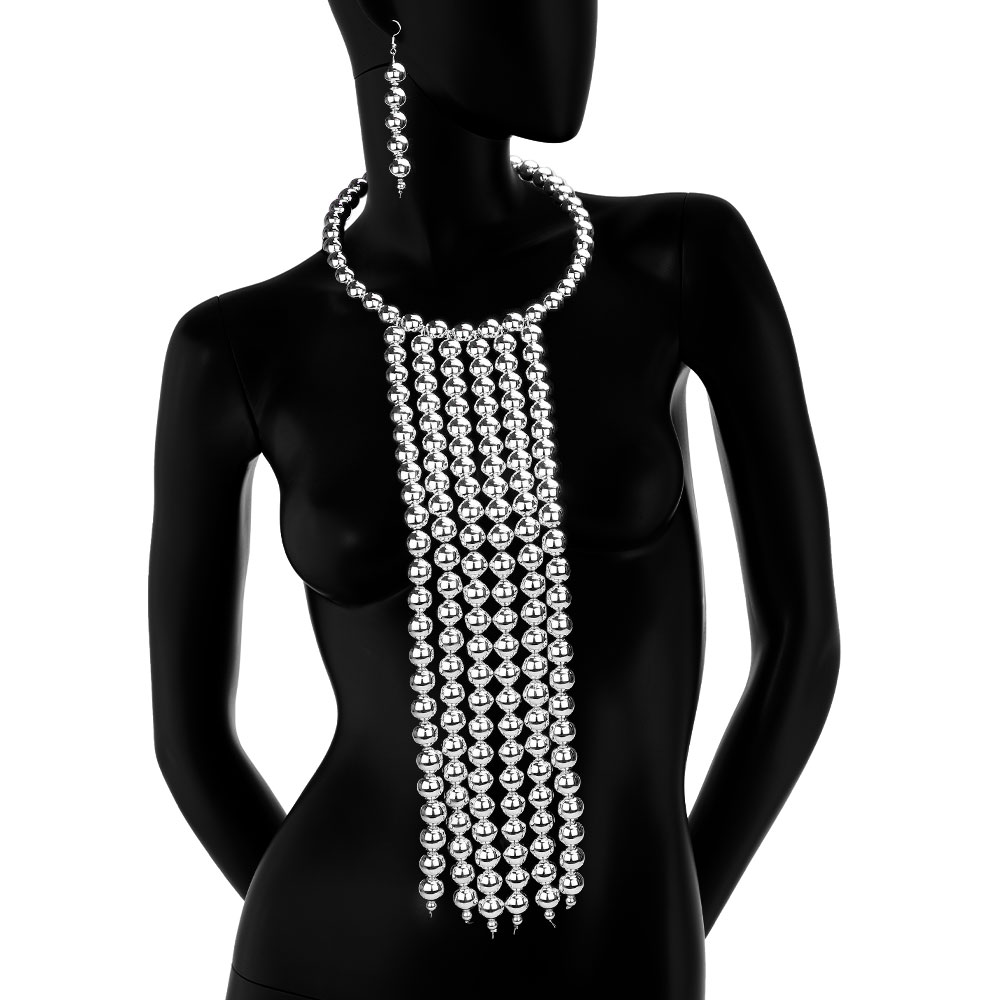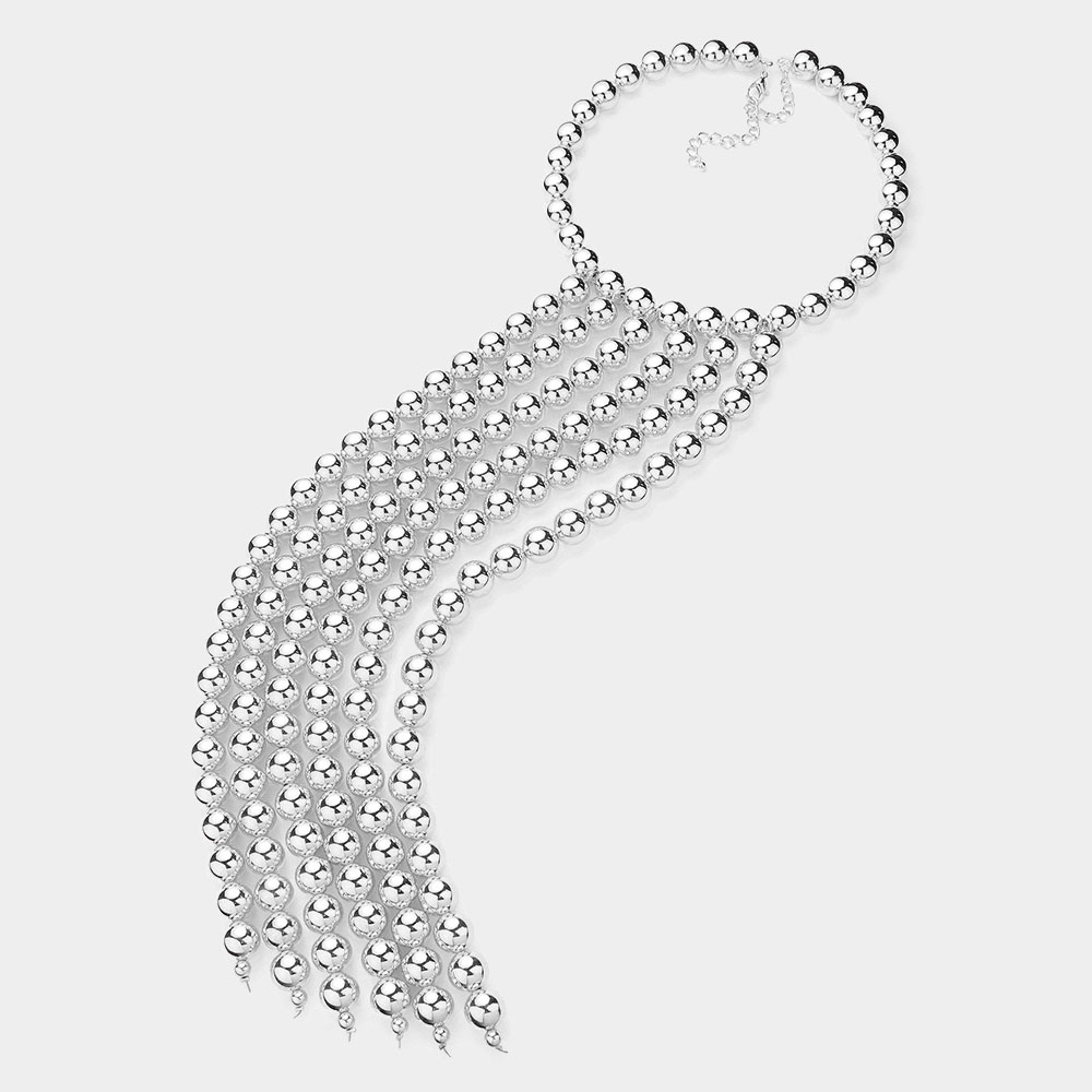 Metal Bubble Beaded Waterfall Bib Necklace