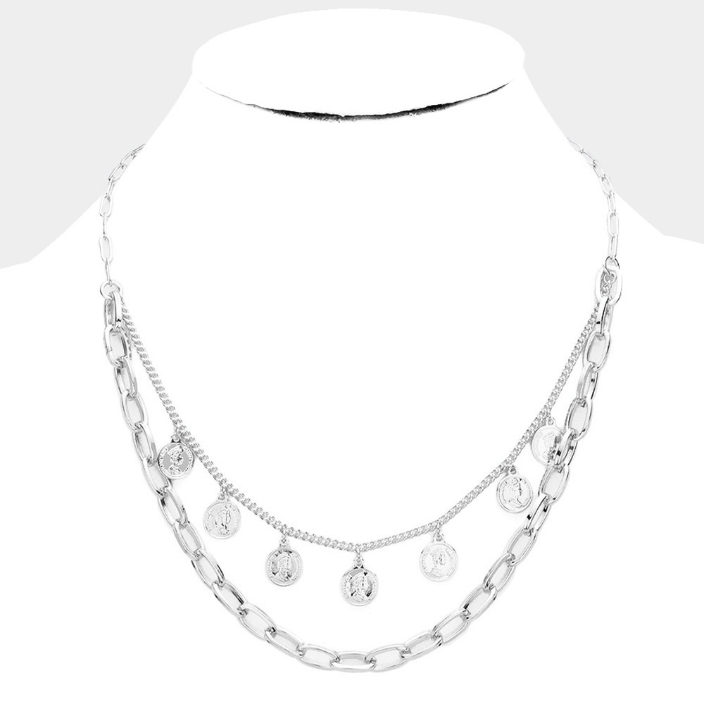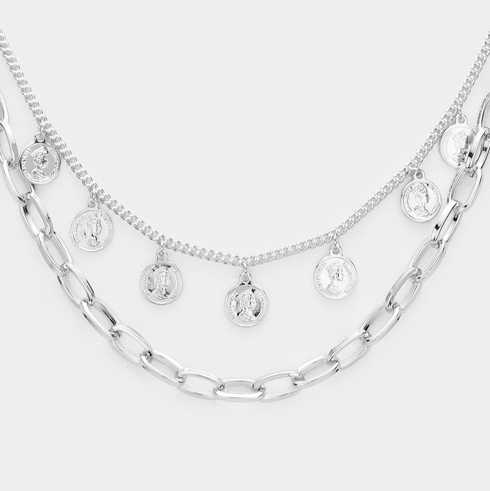 Gold Dipped Textured Rectangle Link Chain Necklace