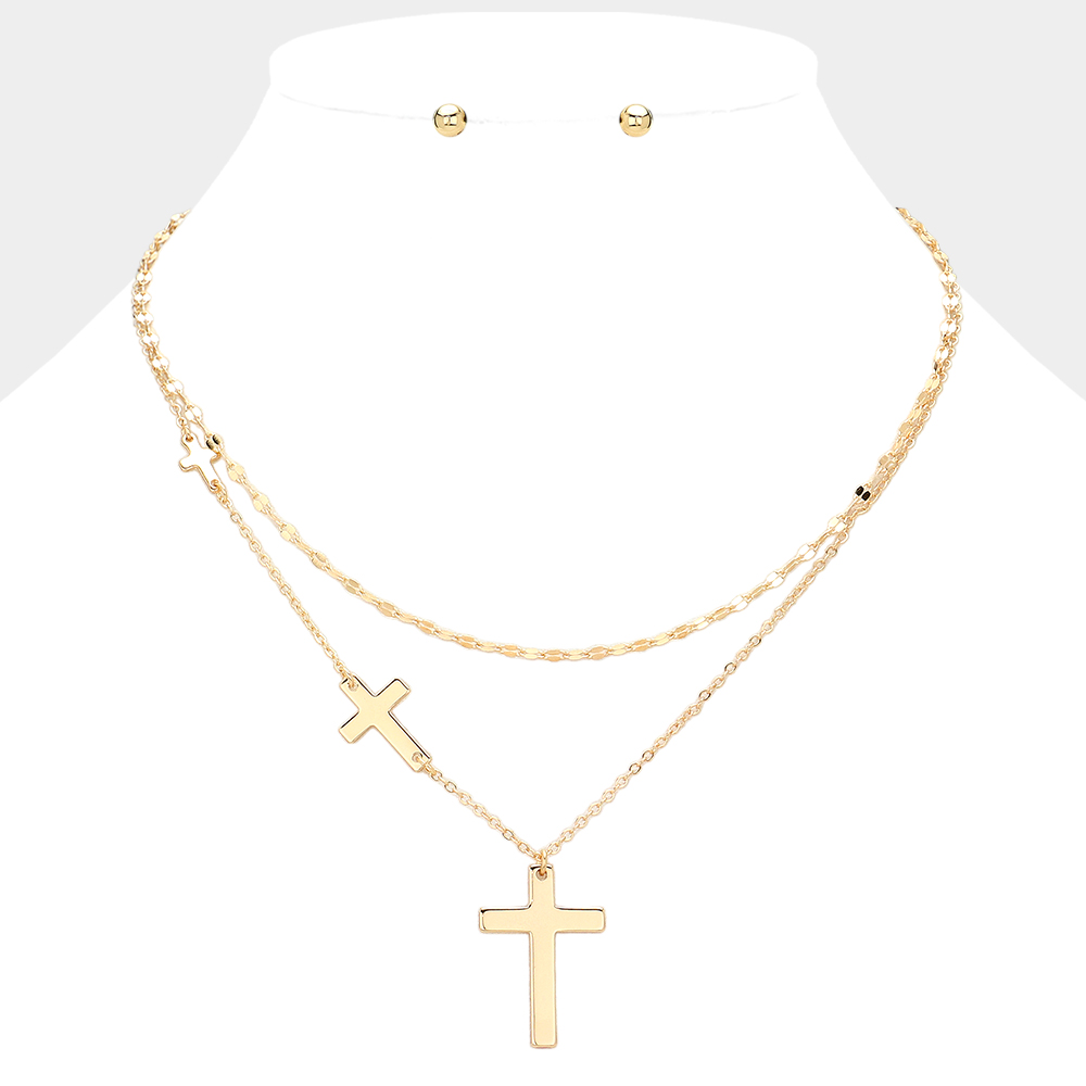 Embossed Floral Pattern Textured Metal Cross Pendant Necklace
