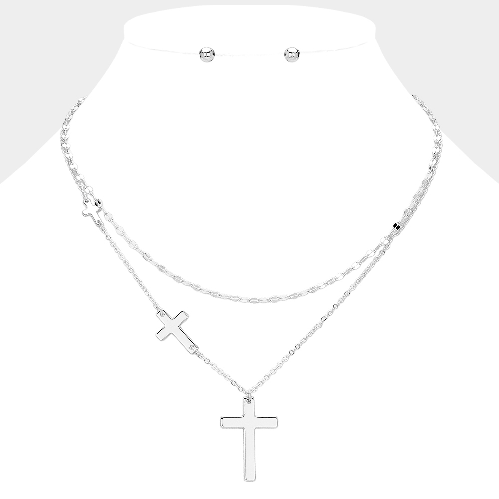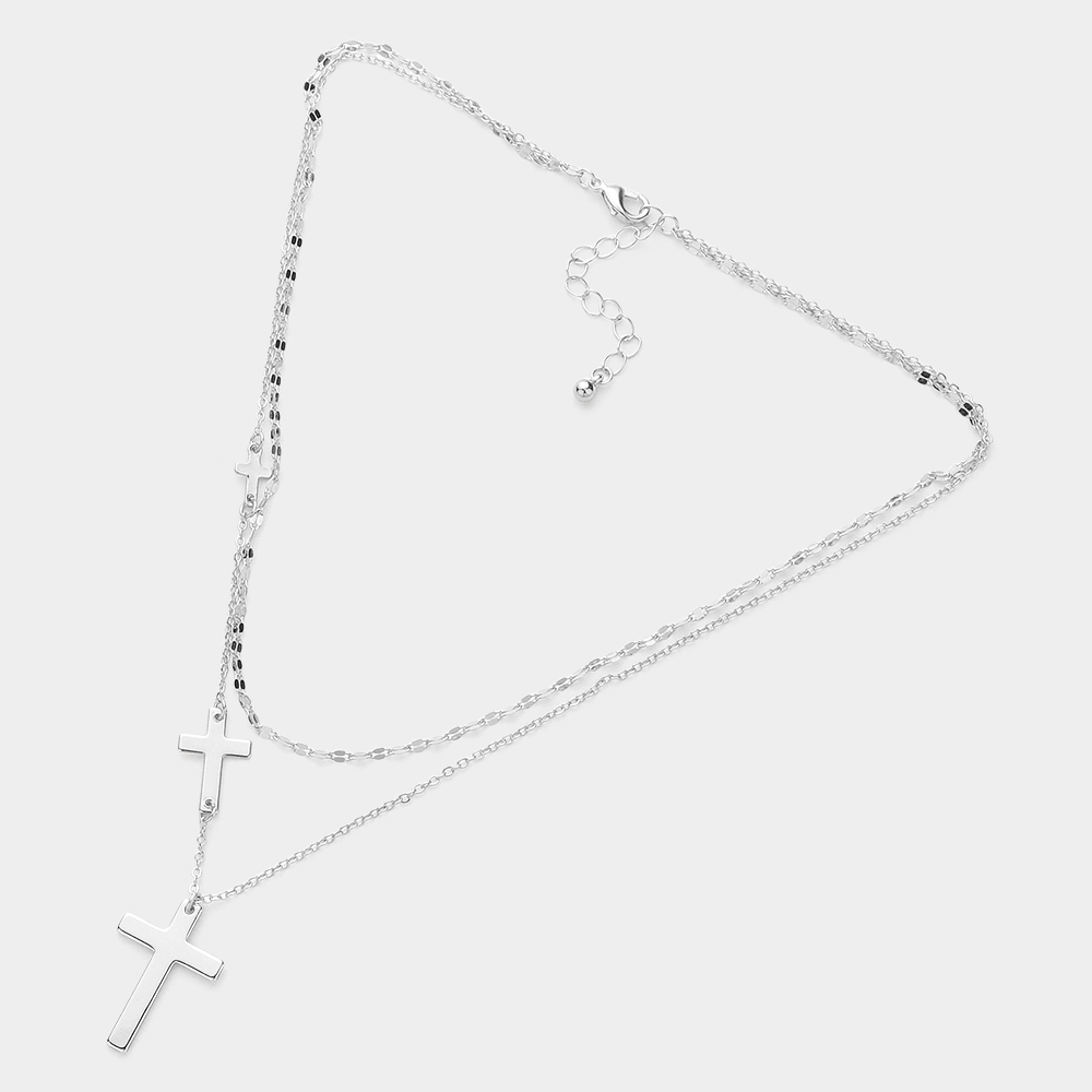 Metal Cross Pendant Pointed Double Layered Necklace