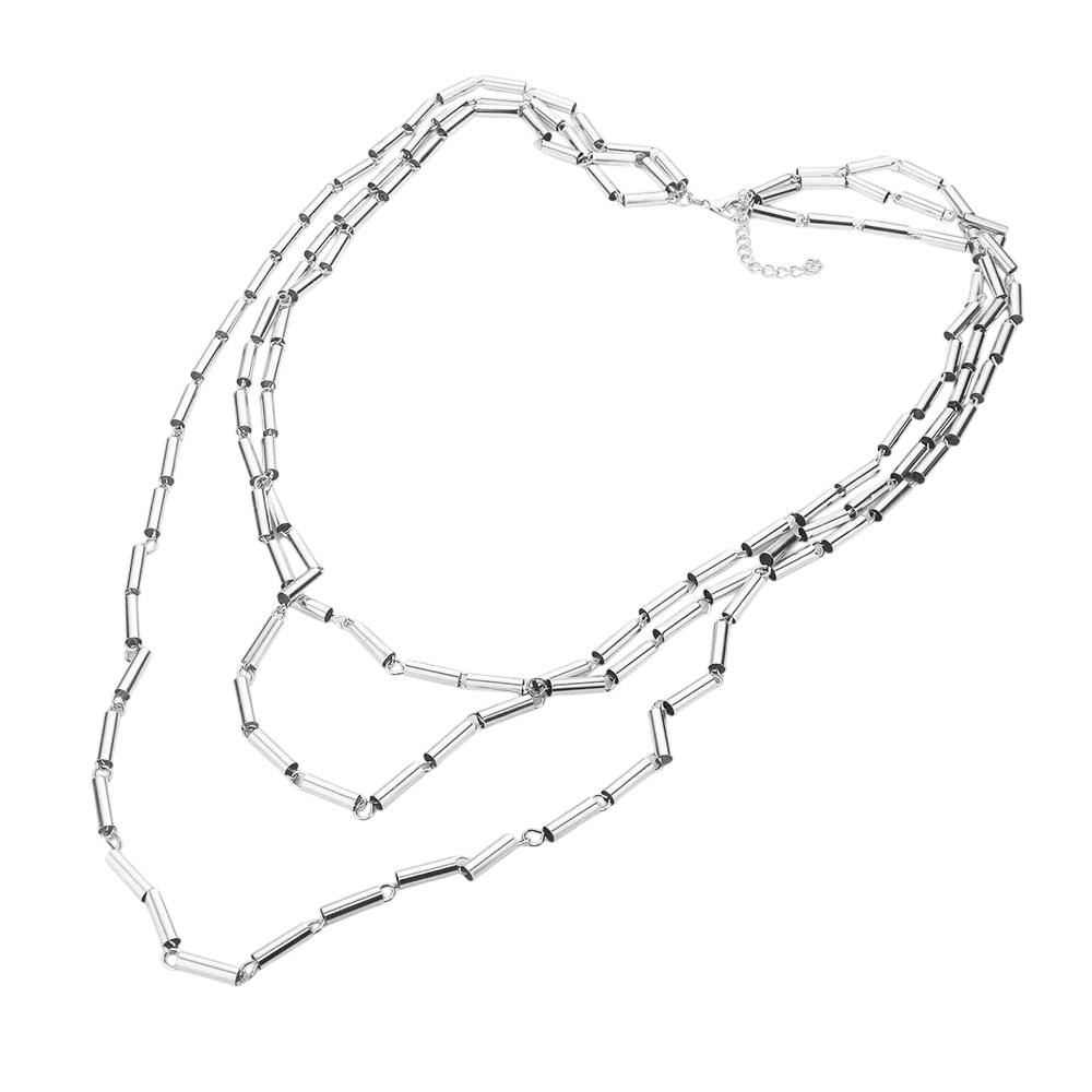 Metal Cylinder Triple Layered Bib Necklace