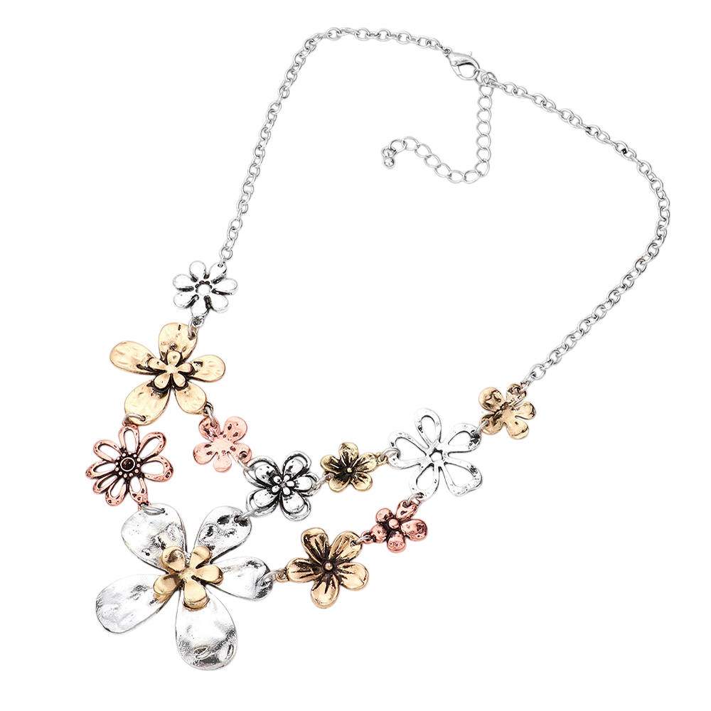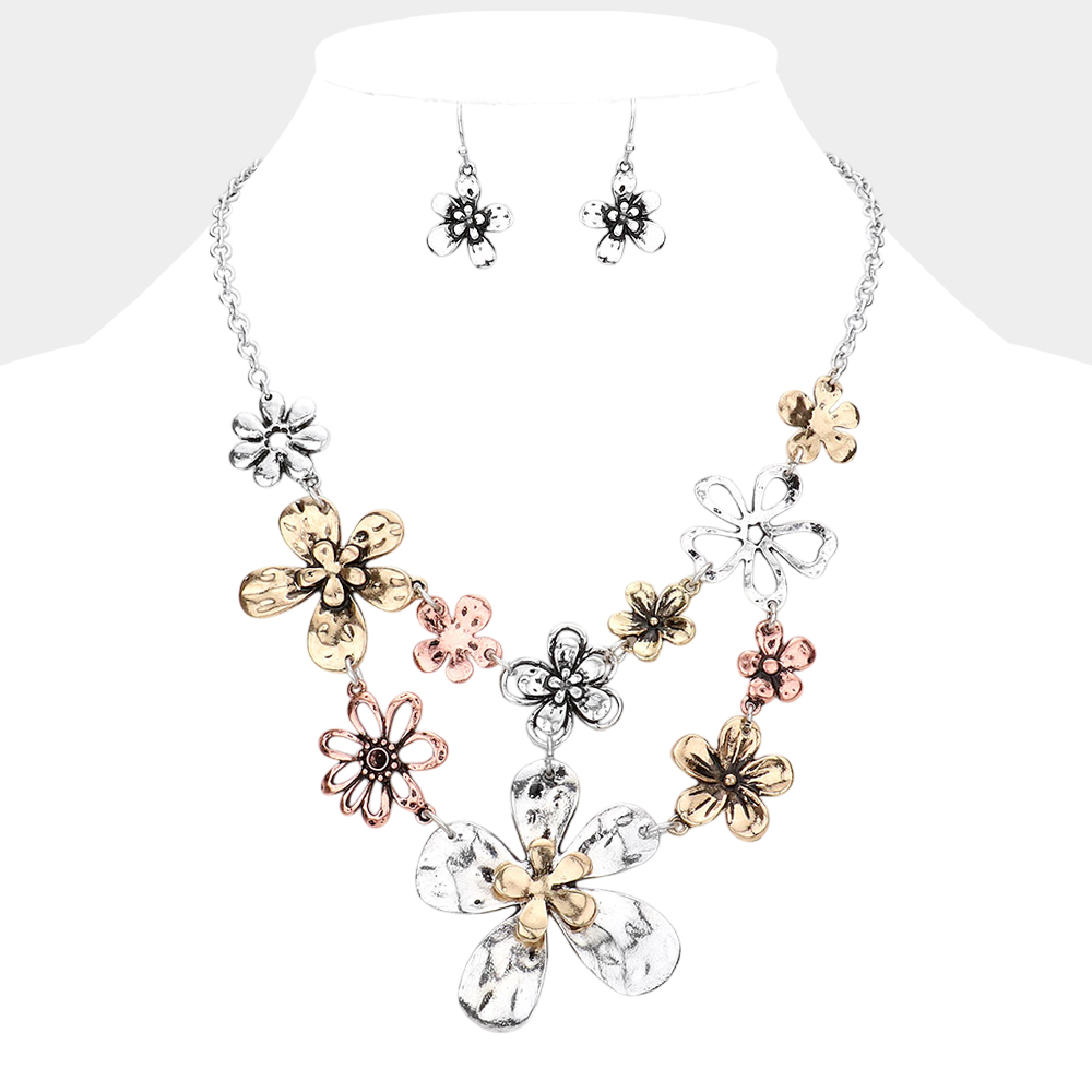 Teardrop Accented Stone Embellished Leaf Evening Necklace