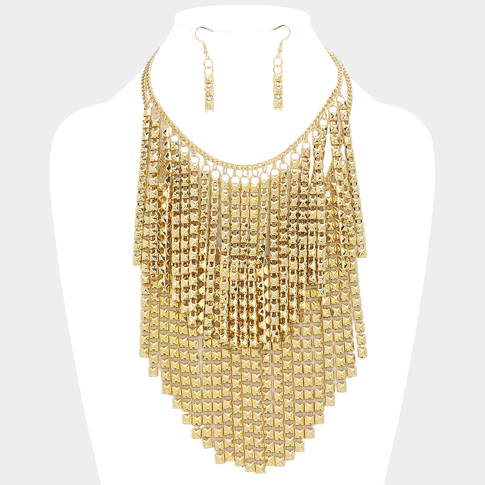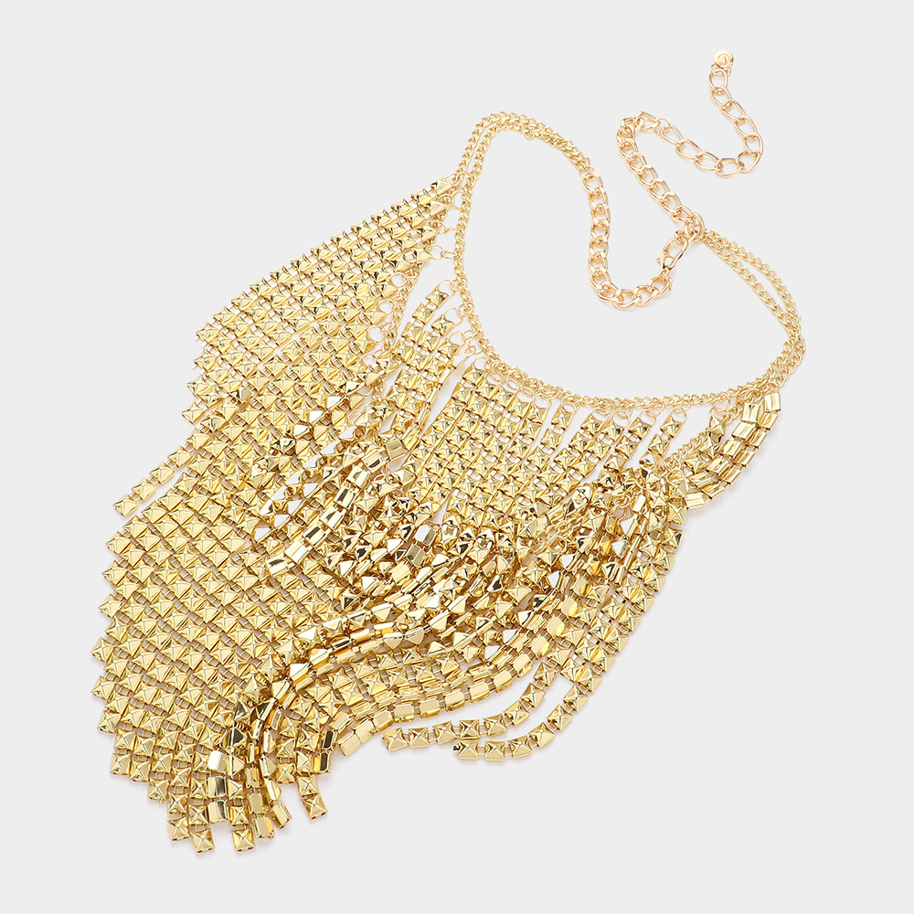 Thread Wrapped Oval Hoop Long Drop Chain Tassel Necklace