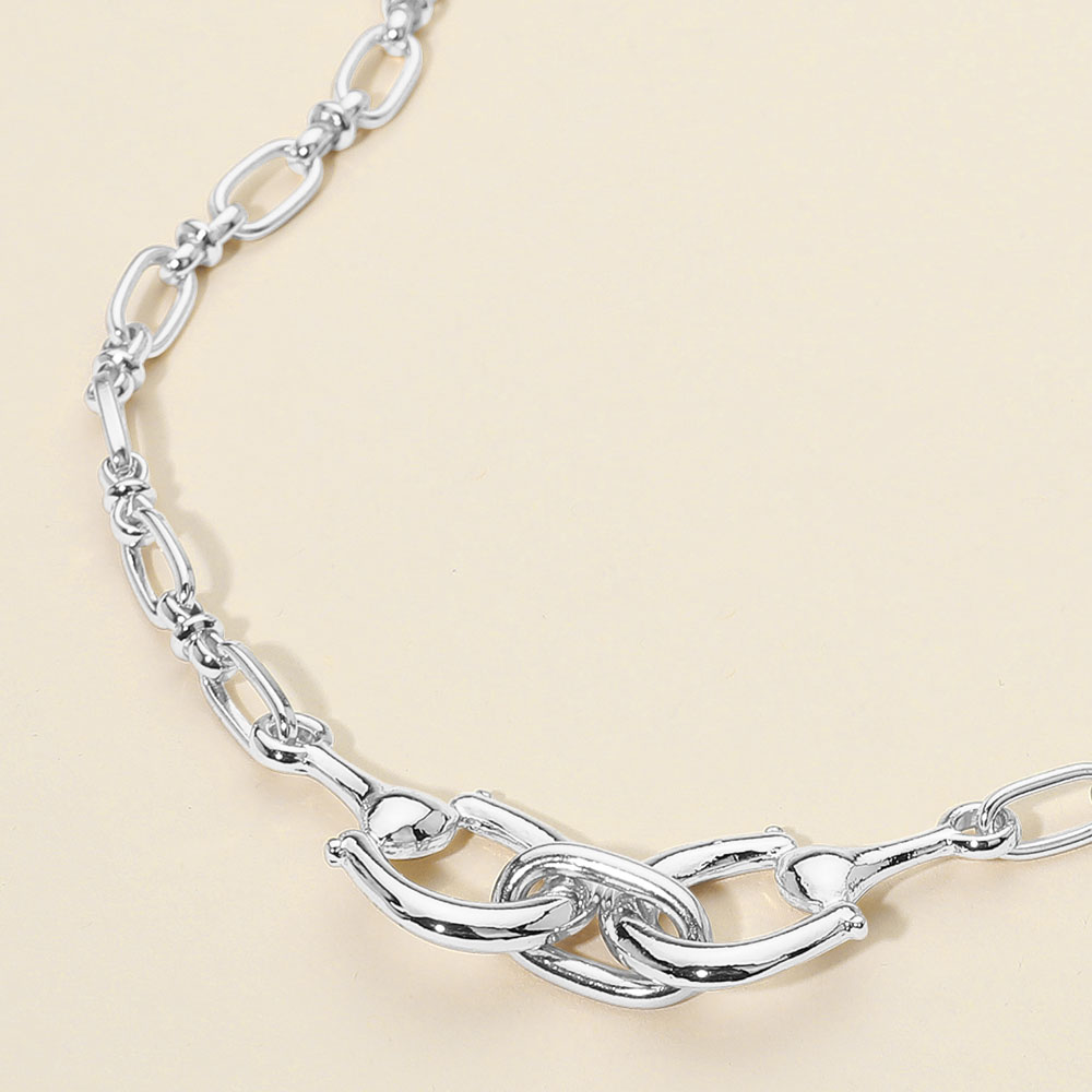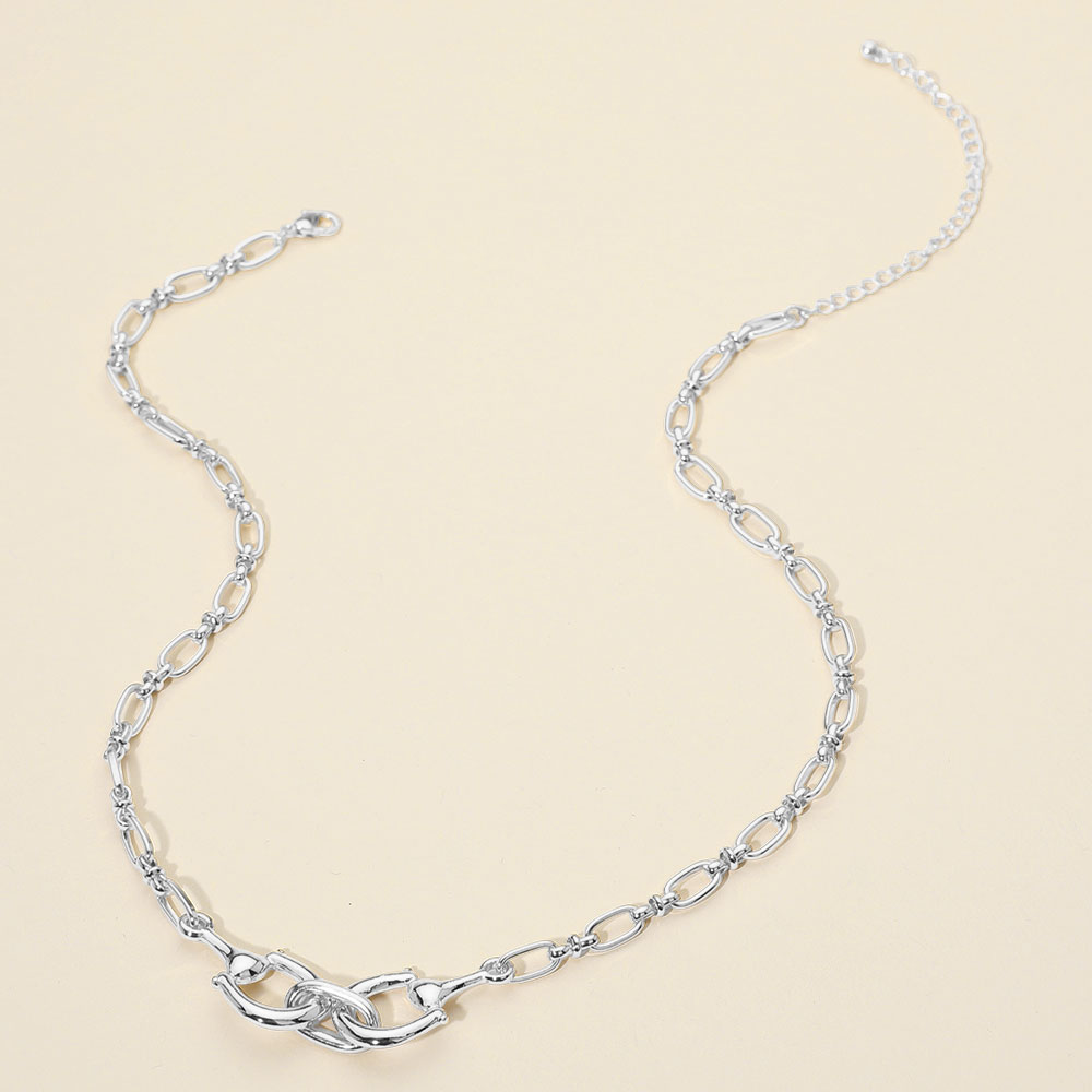 Details • Necklace Size : 16" + 3.5" L • Decor Size : 0.7" L • Make a bold impression with this sophisticated chain necklace featuring a horsebit-inspired centerpiece and intricate links. Ideal for both everyday elegance and standout layered looks. • Lead and Nickel Compliant