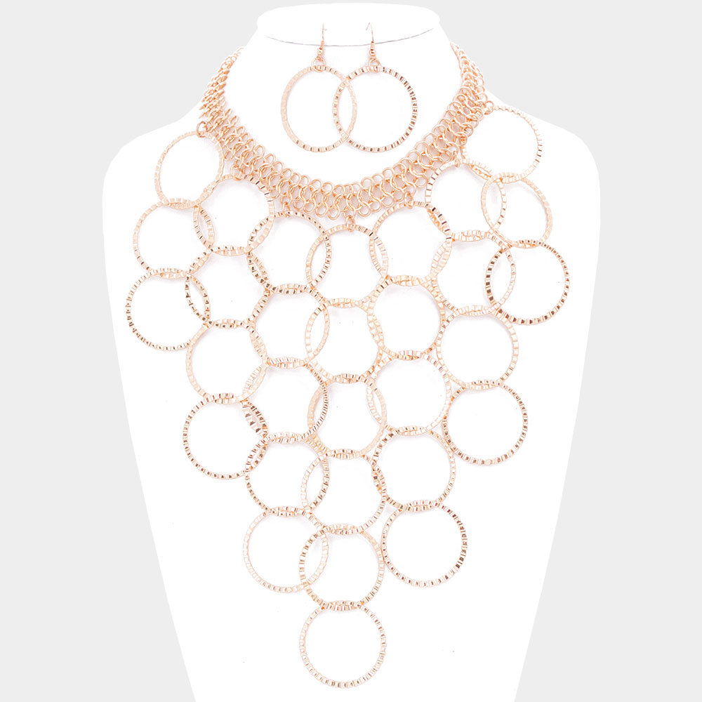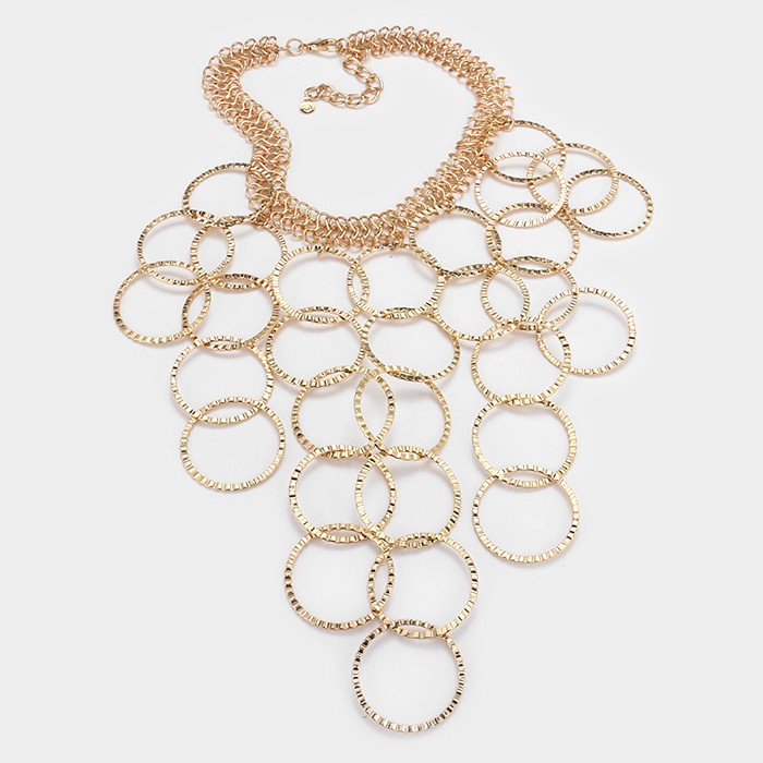 Metal multi-hoop link bib necklace