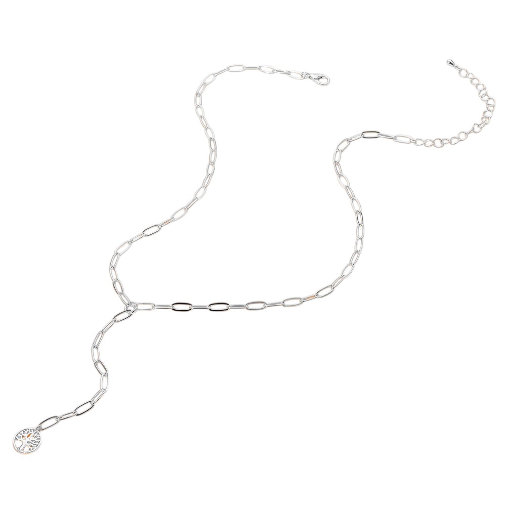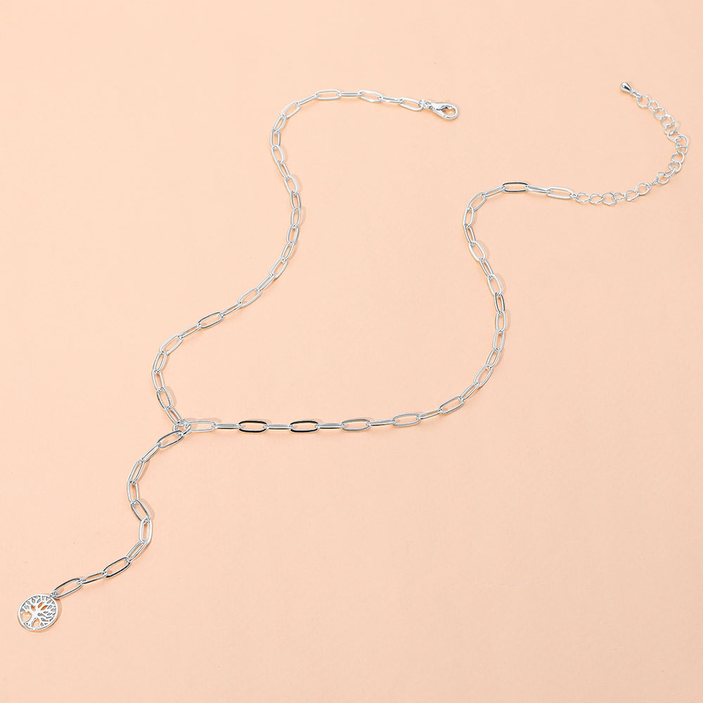 Metal Tree of Life Pendant Accent Paperclip Chain Y Necklace