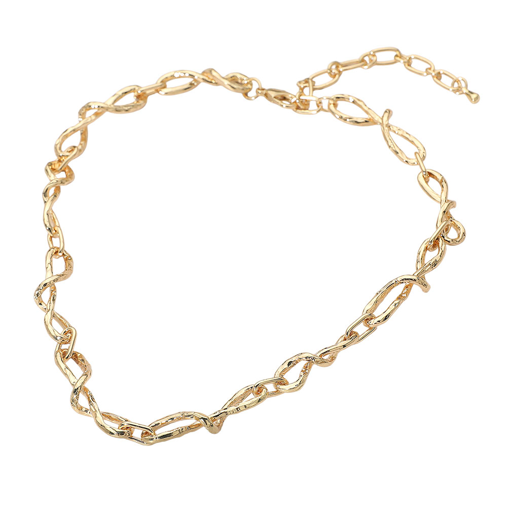 Details • Necklace Size : 15.5" + 3" L • Decor Size : 0.4" L • Add modern edge to your look with this twisted irregular chain necklace featuring unique textured links and a polished finish. Designed with an adjustable closure for a custom fit, this versatile piece is perfect for layering or wearing solo, making it an ideal statement for everyday style. • Lead and Nickel Compliant