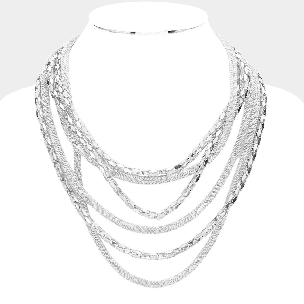 Metal Ball Beaded Multi Layered Strand Statement Necklace