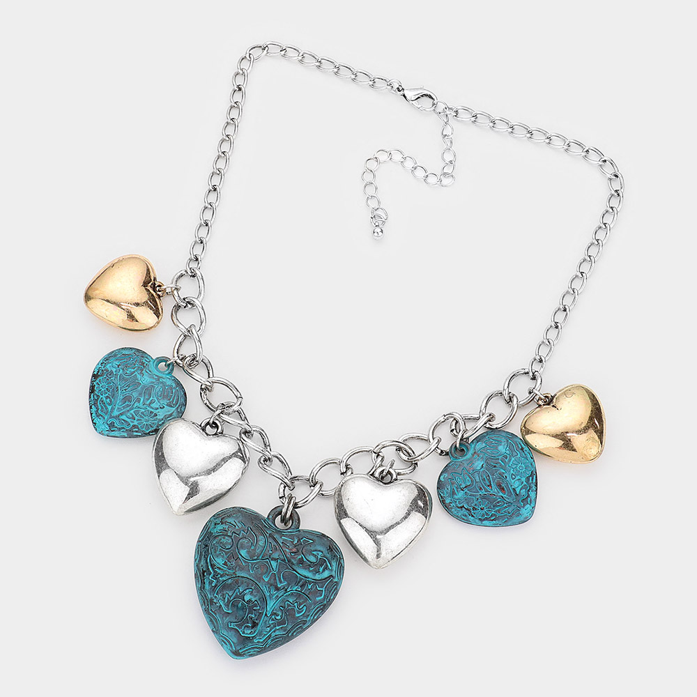 Heart Stone Tip Antique Metal Hinged Cuff Bracelet