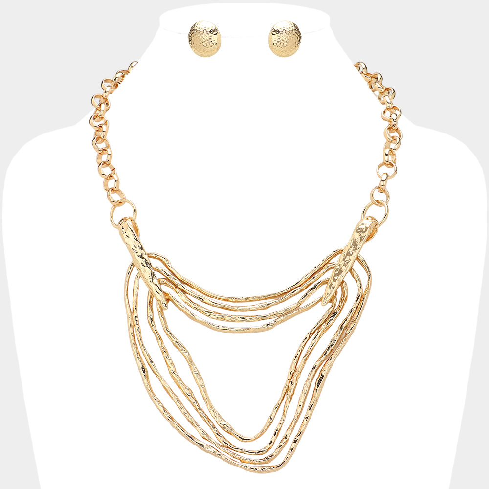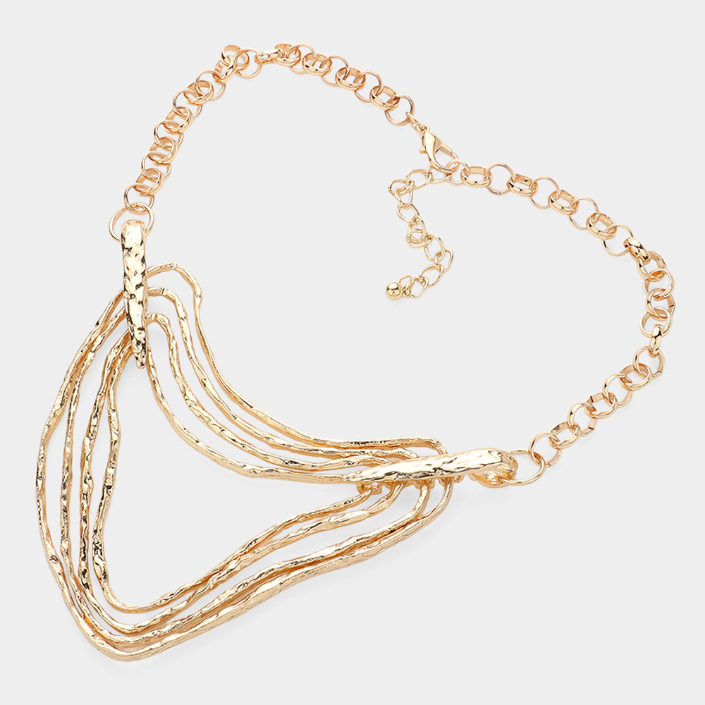 Oversized Abstract Textured Metal Pendant Pointed Statement Necklace