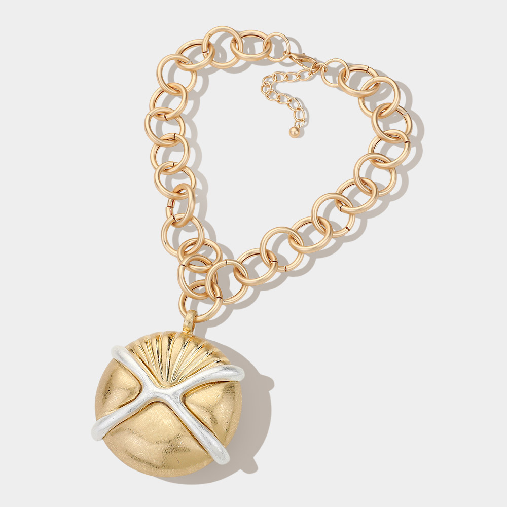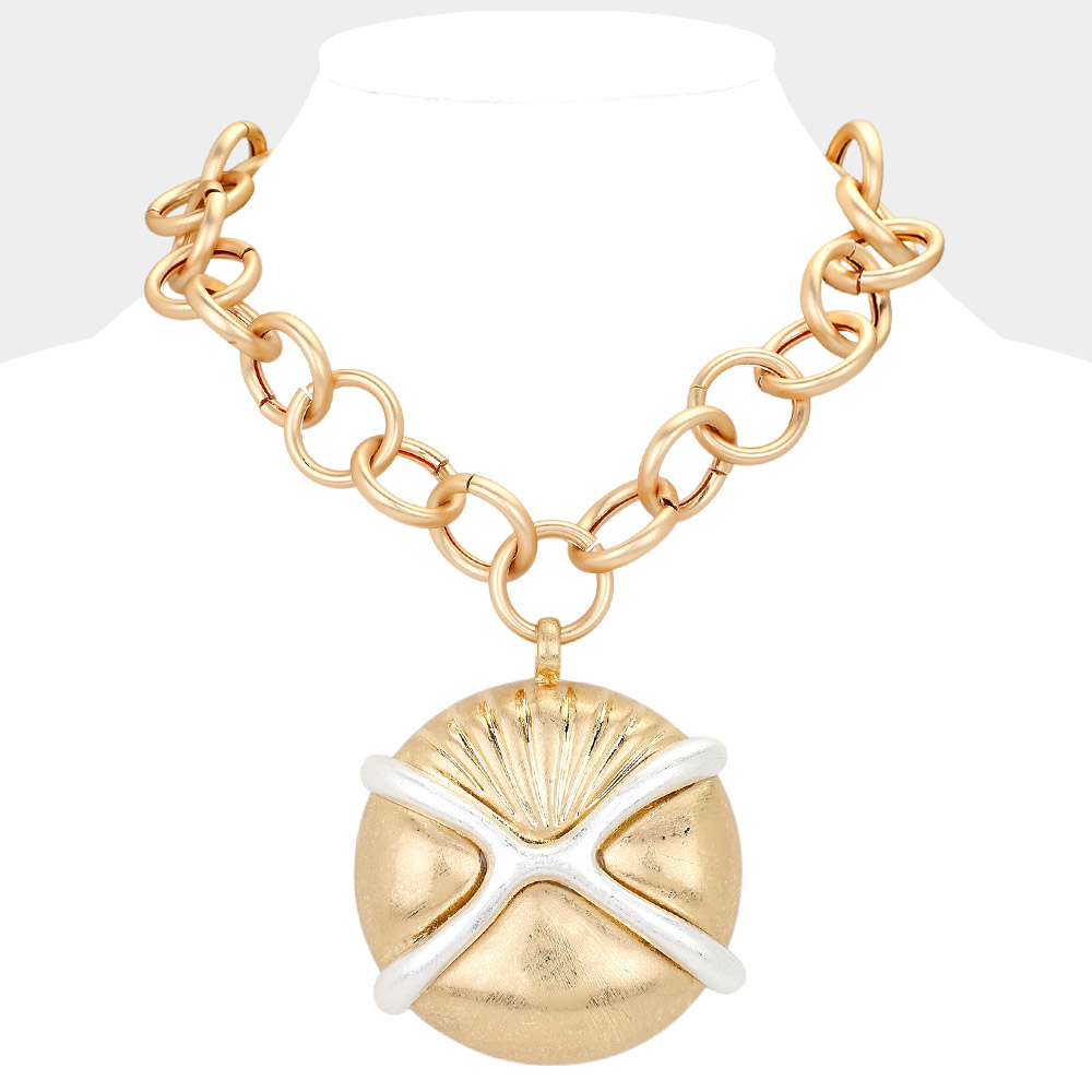 Oversized Matte Metal Sand Dollar Pendant Chunk Statement Necklace