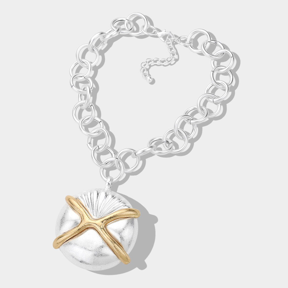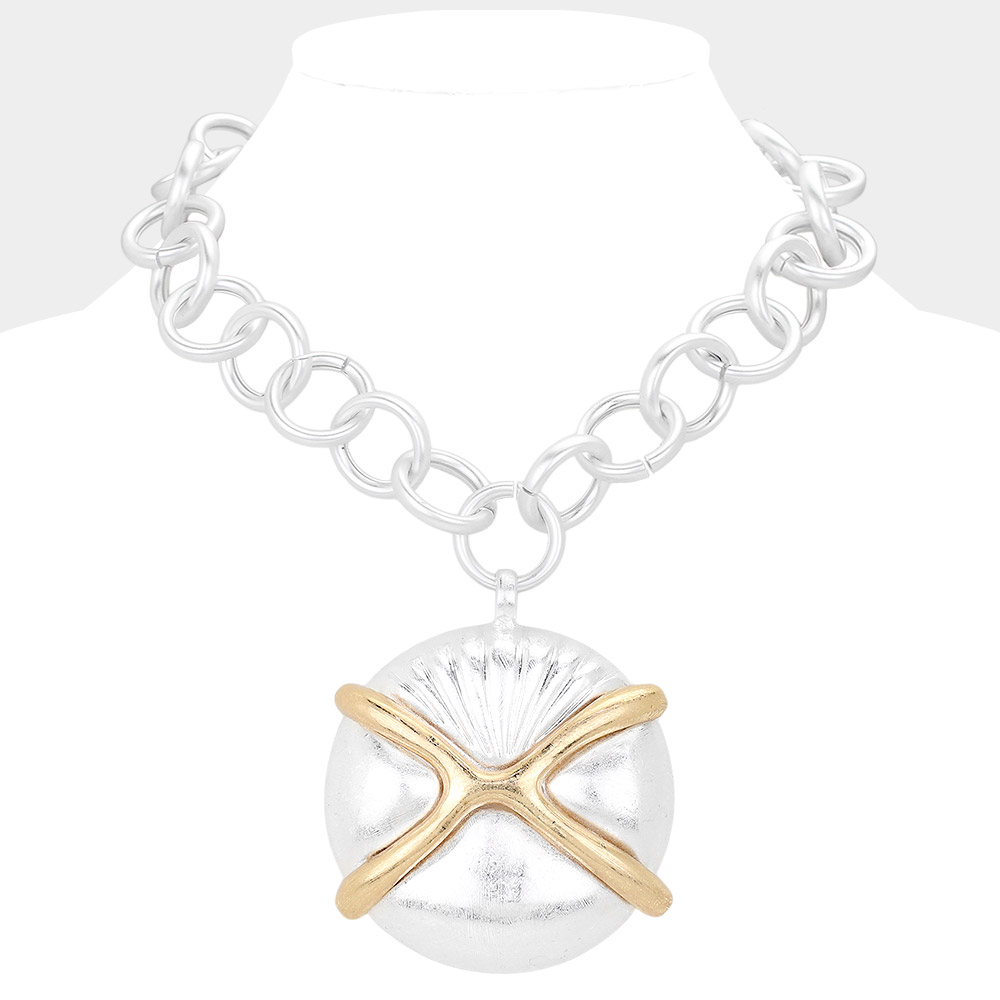 Oversized Matte Metal Sand Dollar Pendant Chunk Statement Necklace